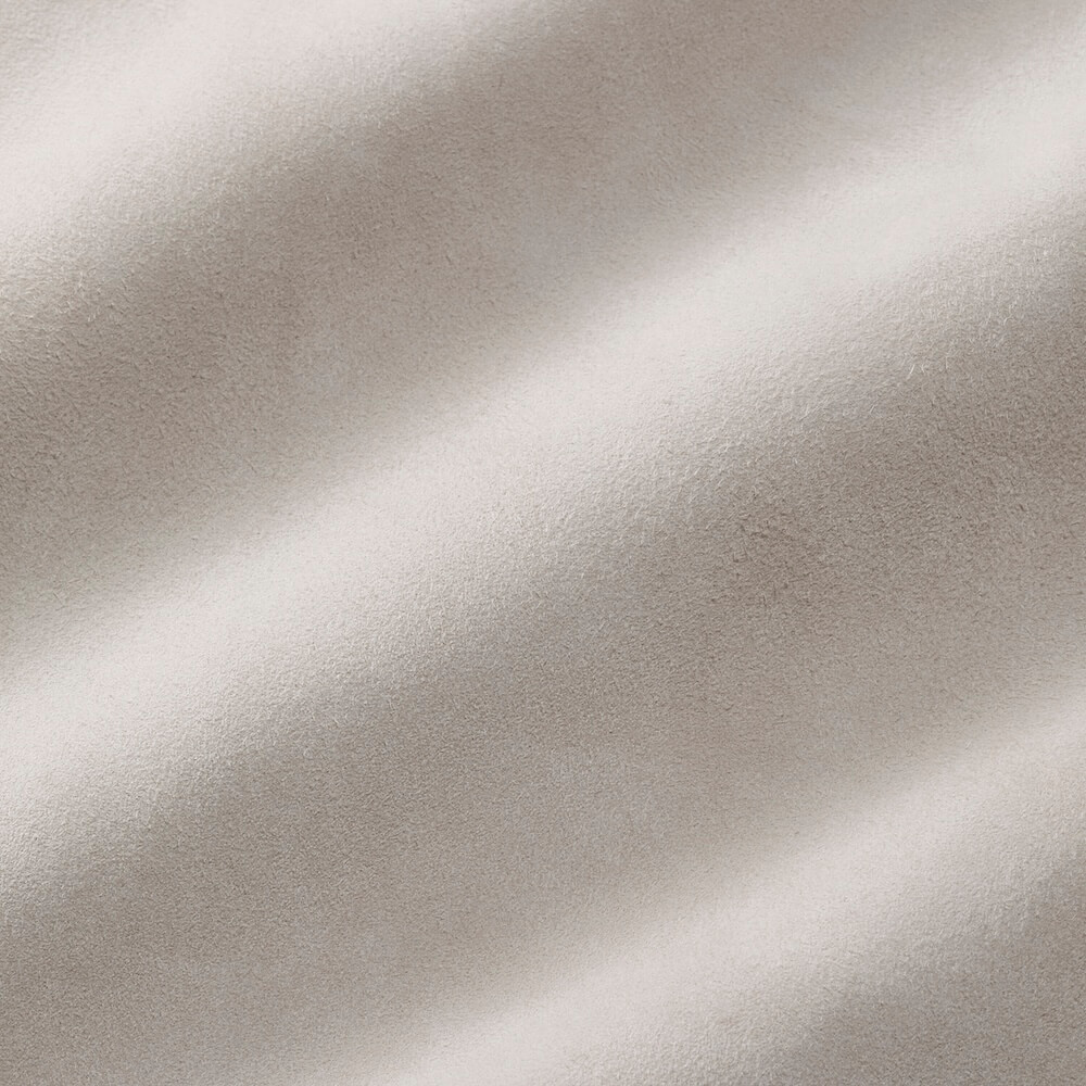 柔らかな色味としなやかなスウェードの質感、丸みのあるフォルムが相まって、羽織るだけで自然と“大人の余裕”を演出してくれる一着。上品にまとまるのも魅力です。襟を寝かせれば程よい抜け感が生まれ、立てれば一転してエレガントで端正な印象に。その日の気分やシーンに合わせて表情を変えられる、ワードローブにあると心強いアウターです