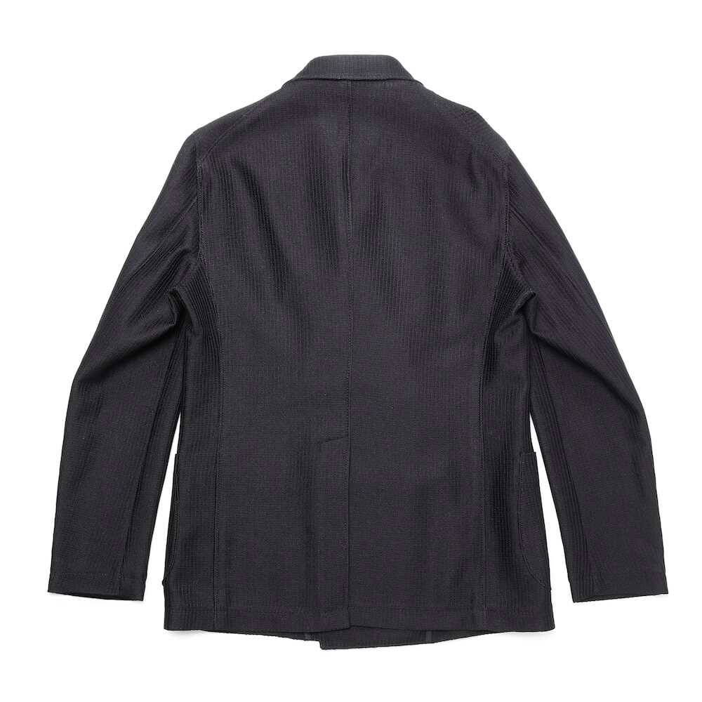 • 見返しあり(前身頃)、背・袖裏地なし、筒袖ステッチあり、センターベント、パッチポケット2つ、内ポケット2つ