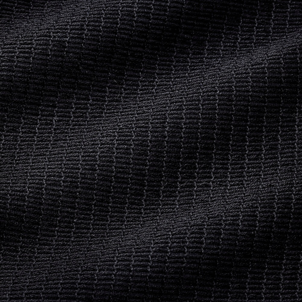 かざせば透けるほどの通気性があり、ナチュラルなストレッチ性も備えています。目付けは250グラム、ブラックとネイビーの2色をラインナップ。