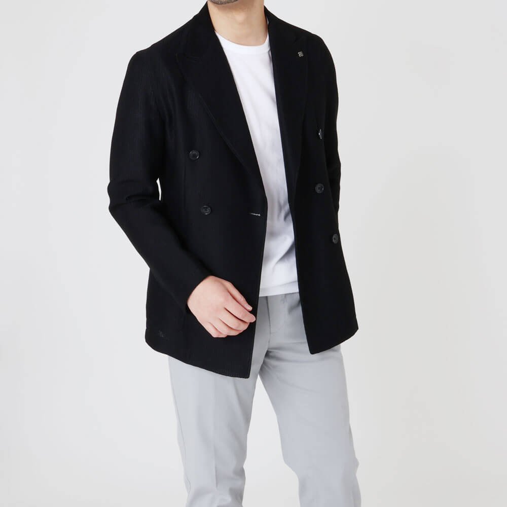 ・モデルは「TAGLIATORE(タリアトーレ)」の中で最も軽い仕立ての"LIGHT"。柔らかな仕上がりのため、ジャージーなどのカジュアルな生地にピッタリです。