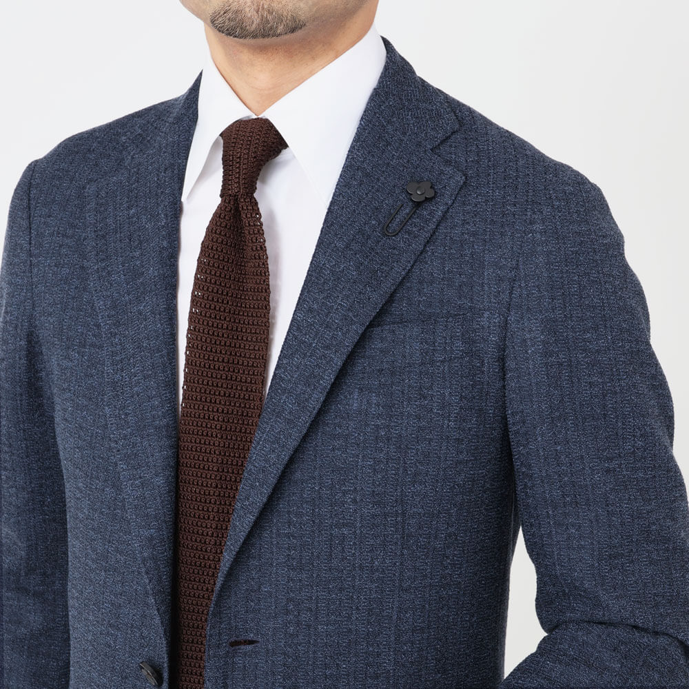 ・ニット地で且つ芯地が使われていないのにも関わらず、ショルダーラインの美しさや立体的なラペルの返りに「LARDINI(ラルディーニ)」の高い技術力が現れています。