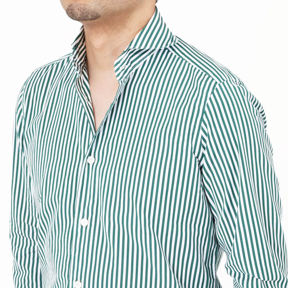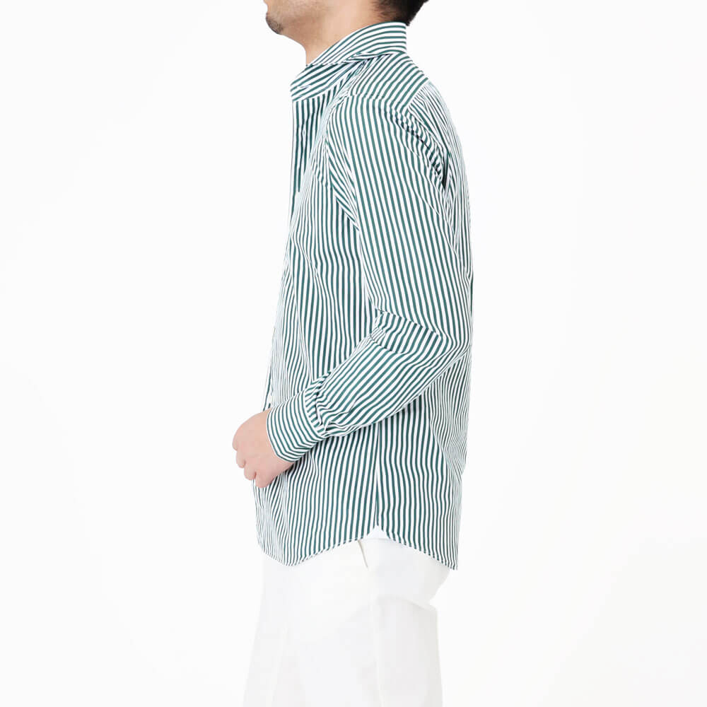 ・狭めな肩幅が特徴的な「Finamore (フィナモレ)」のシャツは、その肩幅からは想像も出来ないほど動き易く、フィット感に長けています。その秘密はいせ込み+前ふりの袖付け。フィット感はありながら、身体にまったくストレスを与えず、極上の着心地です。