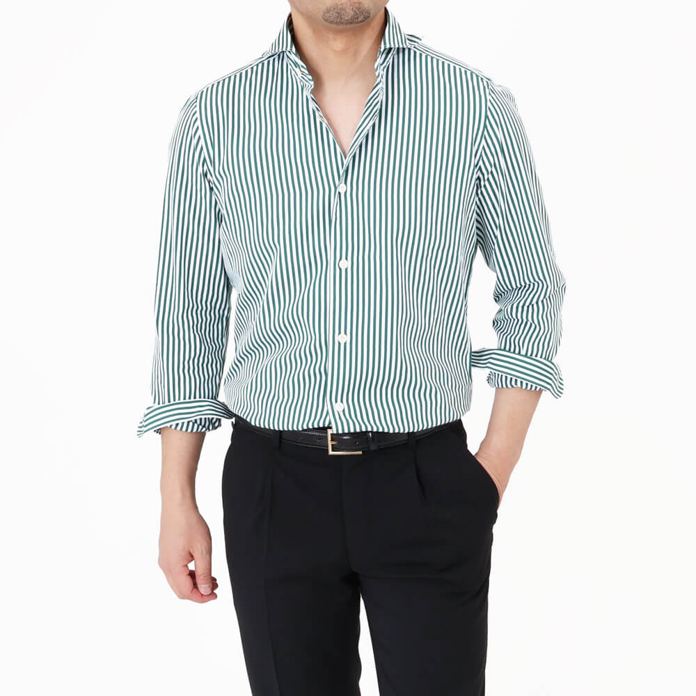 ・ホワイトが等間隔にサンドされたロンドンストライプは清潔感ある柄行きが持ち味で、シンプルなので取り入れやさが特徴。