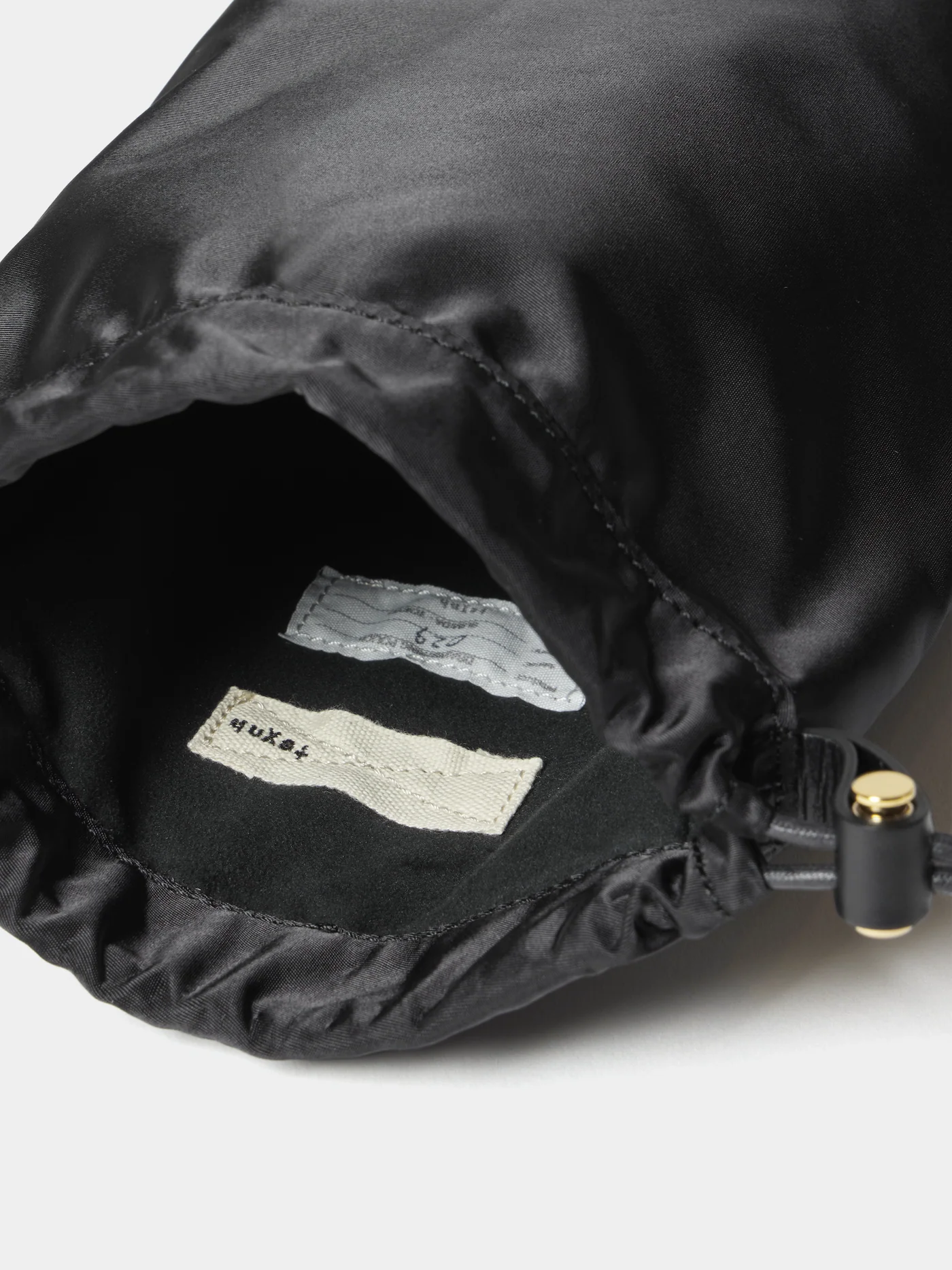 高強度を誇る66ナイロンを使用したツイル素材。 シルクサテンのように美しい光沢感からは 想像できないほど耐久性が高い。