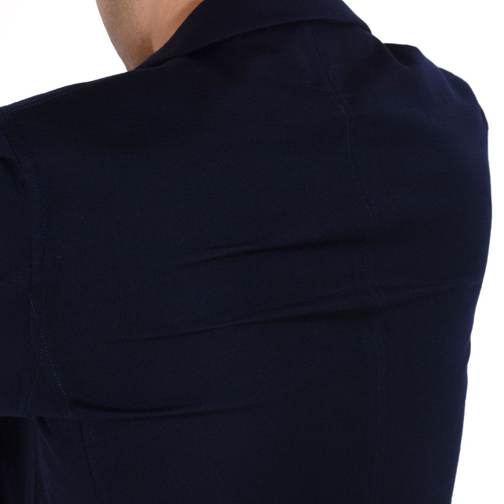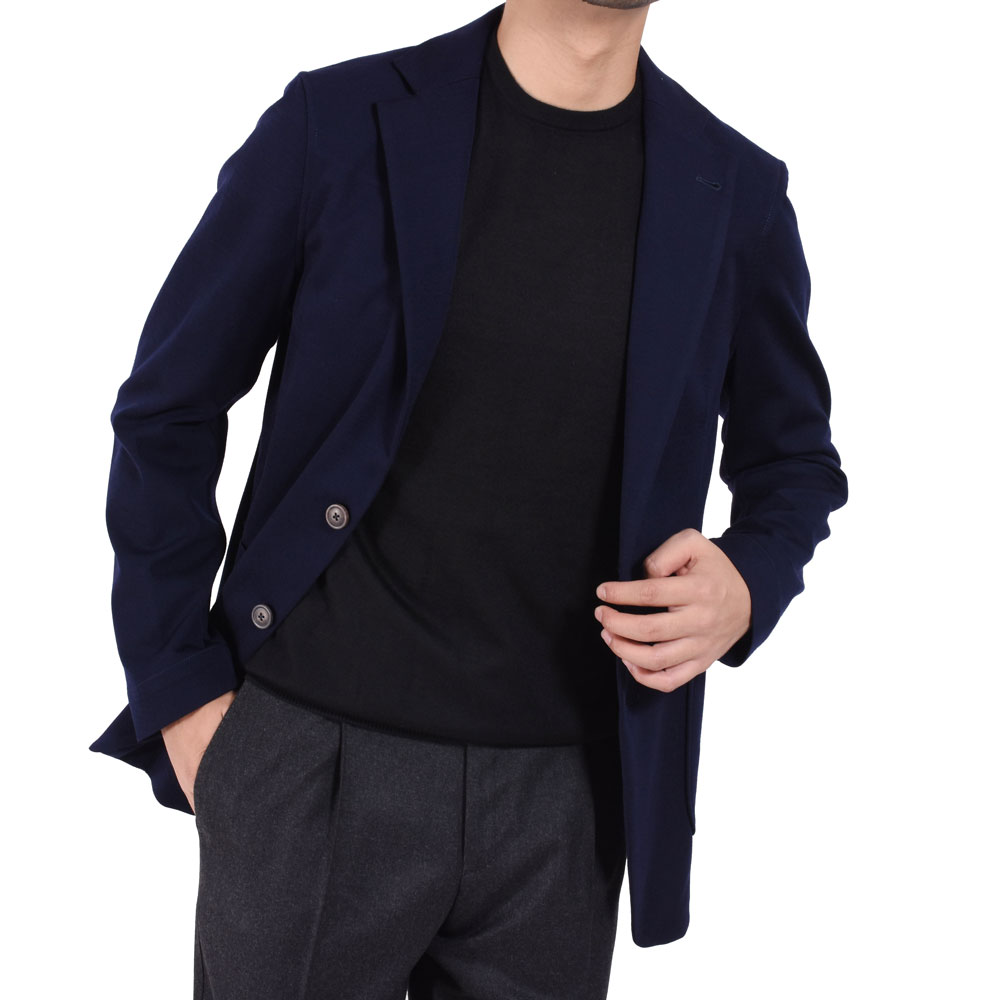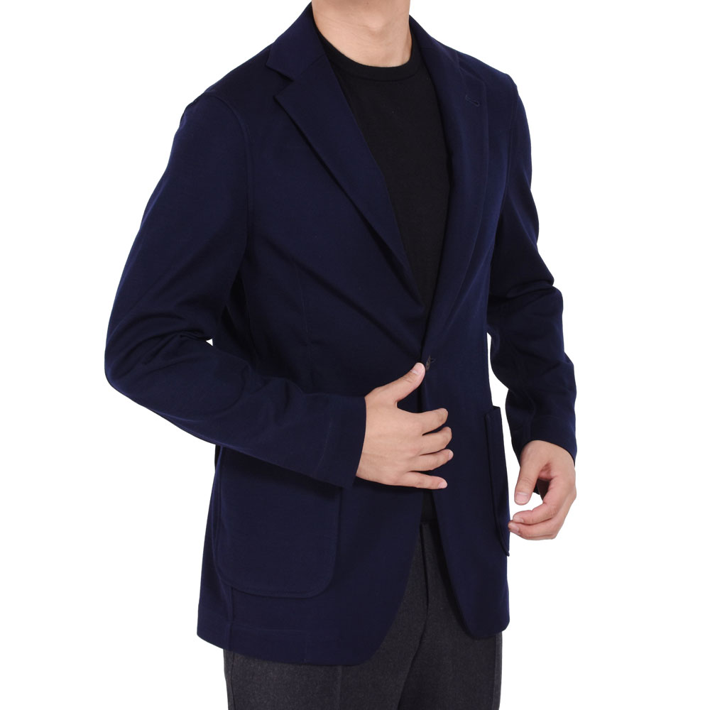 ・"コンバインジャケット"と命名されたこちらはスムースなウールジャージーの裏面にポリエステルをボンディングすることで、ニットジャケットの"ダレやすい"、"カジュアル感が出過ぎる"、"重い"、というデメリットを見事に克服した一着。伸縮性を併せ持ちながら、見事なまでに軽くて柔らかいのです。