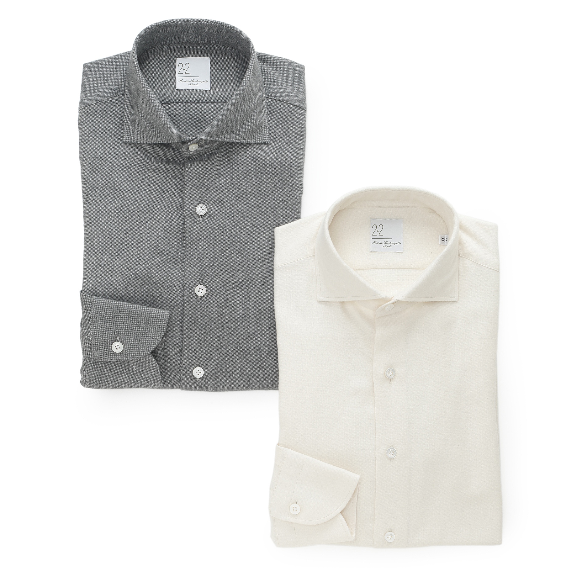 あたたかく柔らかな着心地のコットンネルシャツは、着ると非常に気持ちよくて楽です。ジャケットスタイルの際にウールタイやニットタイを合わせると、より季節感が出て◎もちろん、ノータイでもカッコいいですね。
