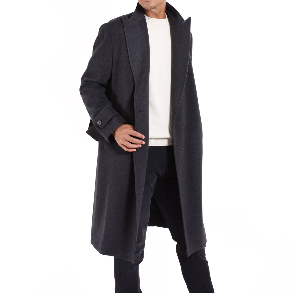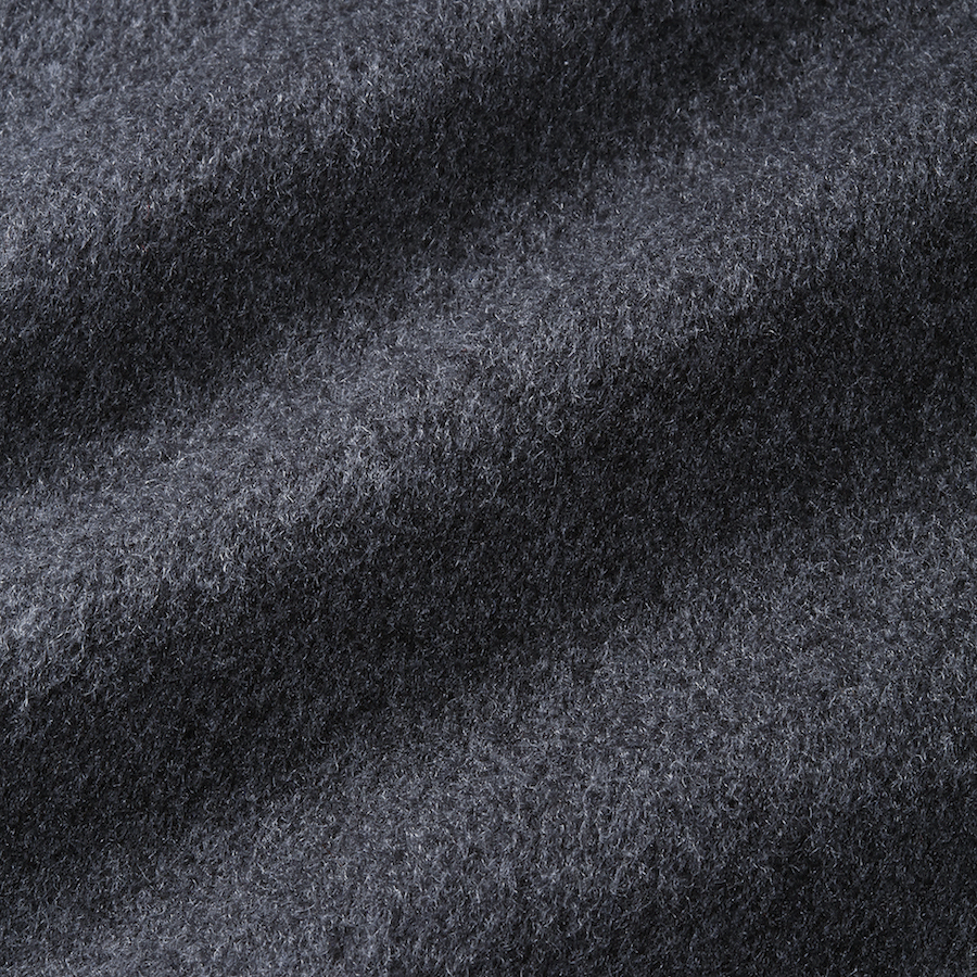 ・生地はカシミア混ウール(日本の品質表示は毛100%。イタリア表記ではVirgin wool 90%、Cashmere 10%) 。目付は420グラムです。カシミア混ならではの滑らかなタッチと微光沢感により、イマドキ顔のコートにラグジュアリー感が加わりました。全3色をラインナップ。