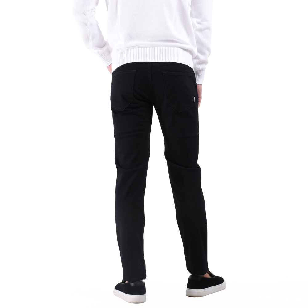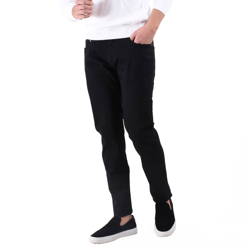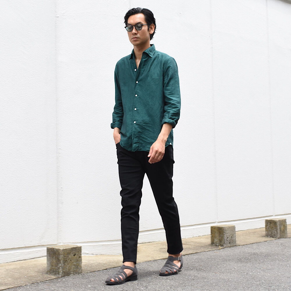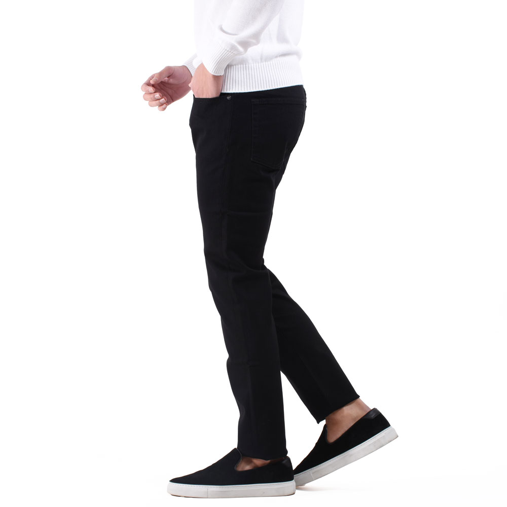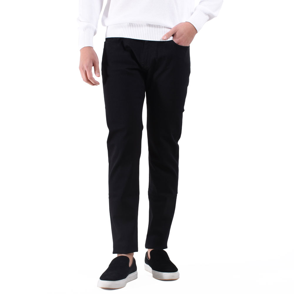 ・レーヨン混のこちらの生地はとてもソフトでストレッチ性も抜群です。真っ黒といっても控えめな加工によりほどよくアタリ感はあるので、サラリと穿きこなせるはず。洗練された仕上がりです。