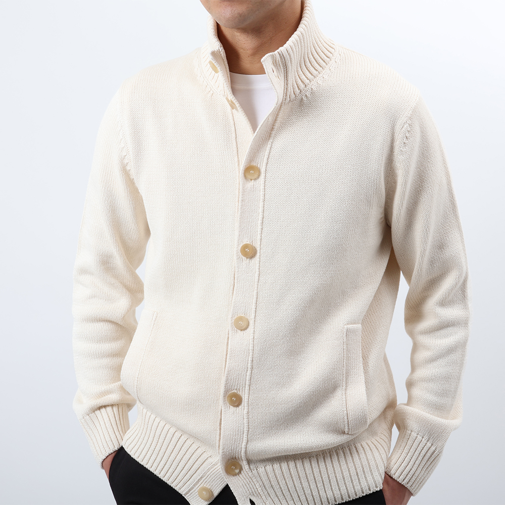 ・ミドルゲージでフルボタン仕様の「CHIOTO(キョート)」は、レイヤードで着用できたり、保温性と耐久性といった機能面の高さとデザインの洒脱さが特徴。