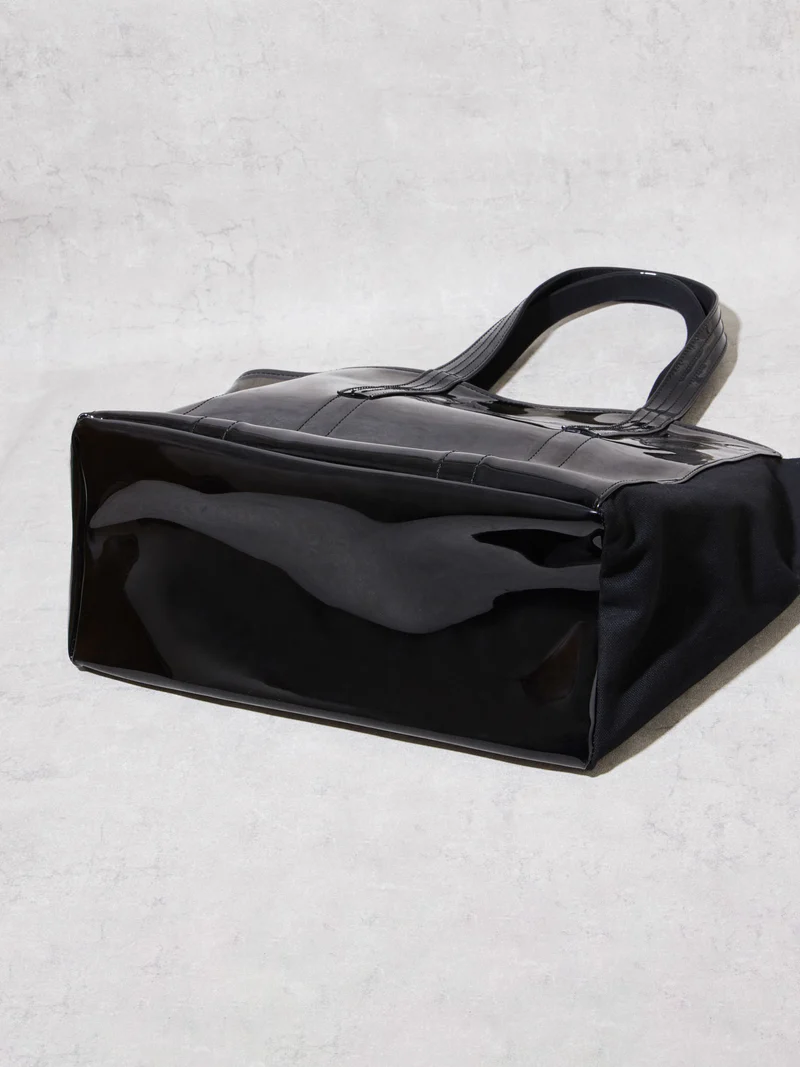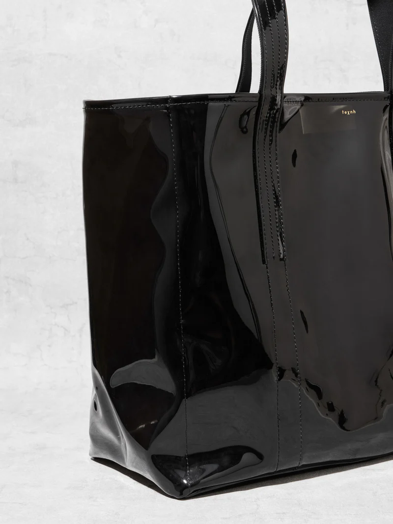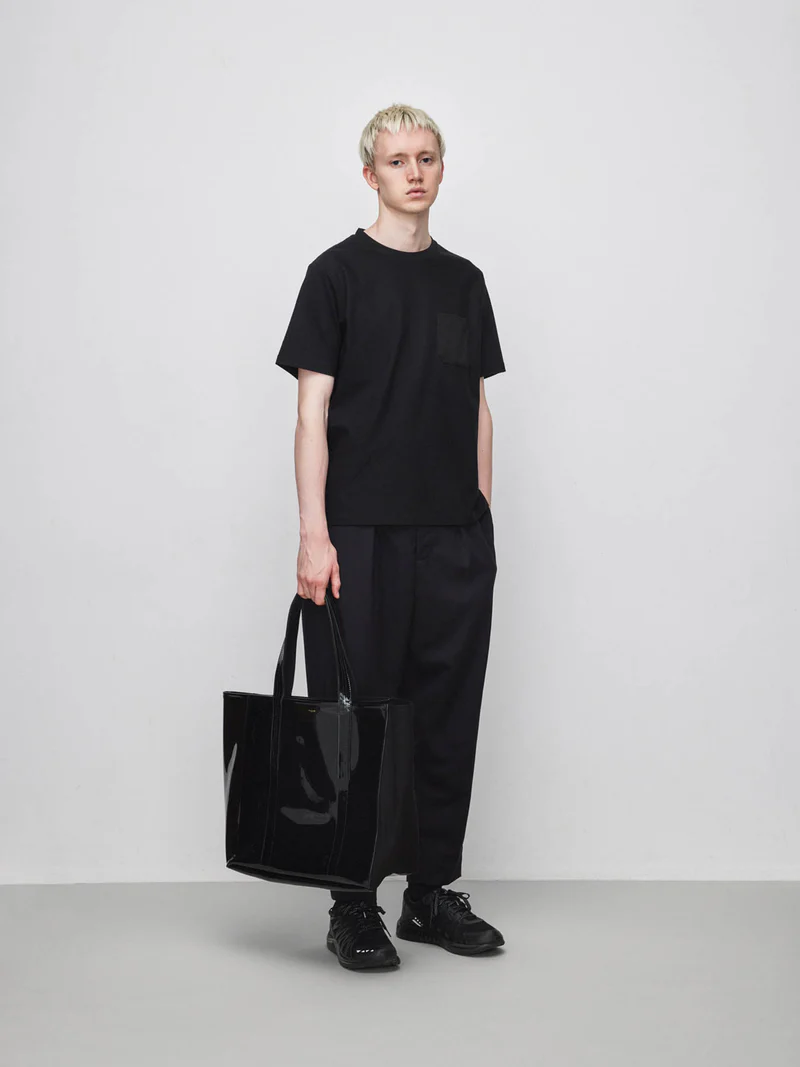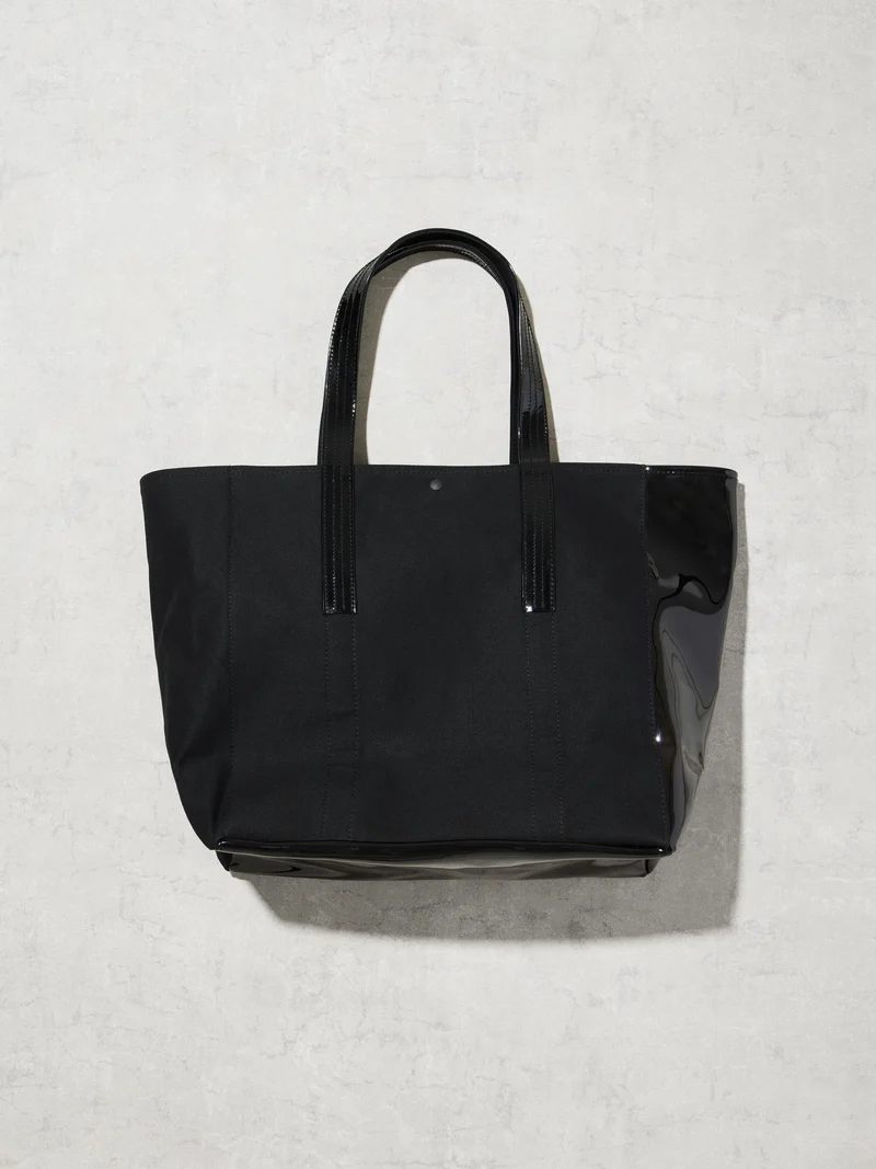 普遍的なトートバッグにtexnh流のアレンジを加えたプロダクト。二つの素材の特徴とそれを最大限に活かした構造が機能性を高めている。