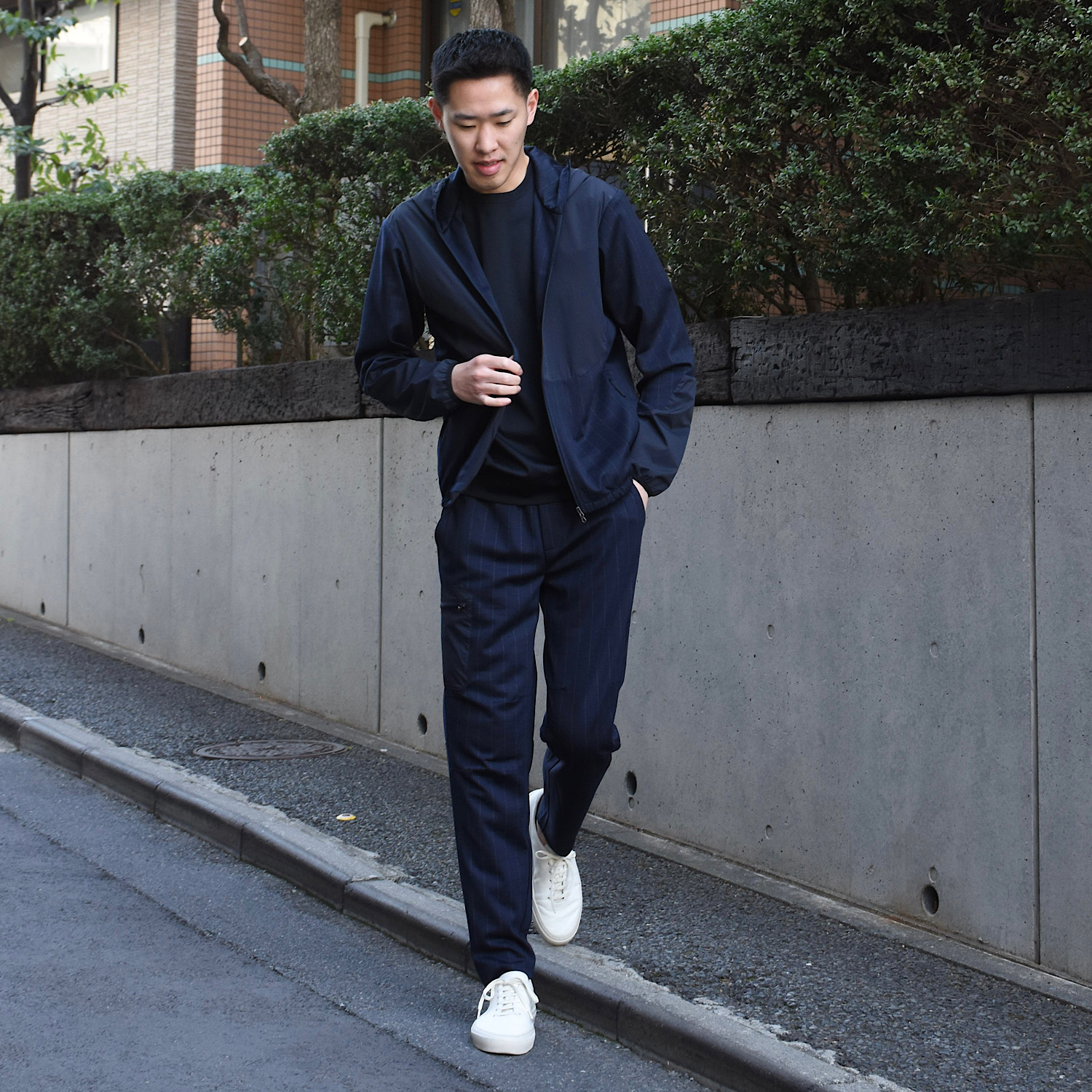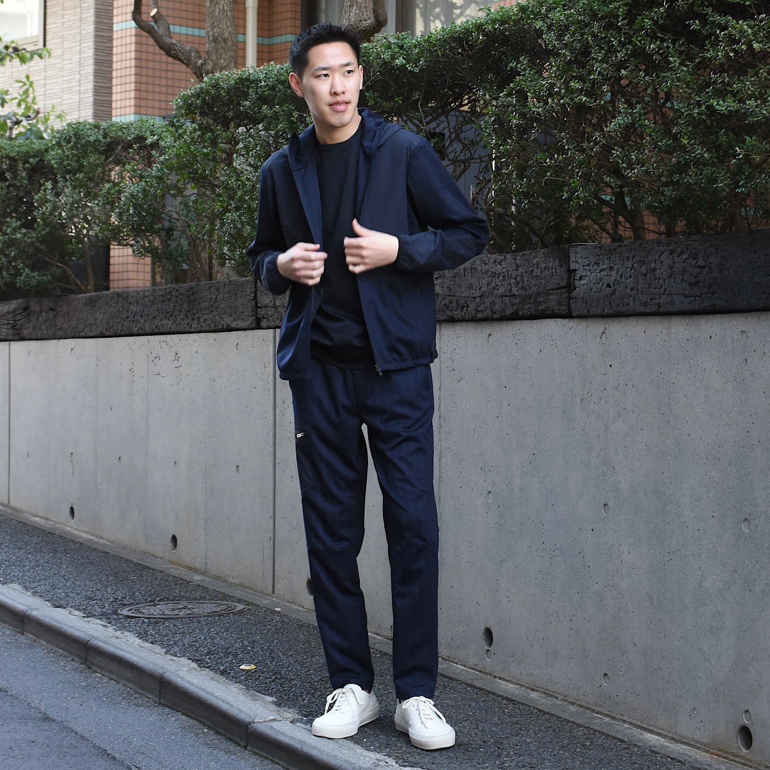 ・ストレッチナイロン部分にはストライプ柄ウールジャージーが裏地として使われており、肌当たりの良さと耐久性が考えられています。