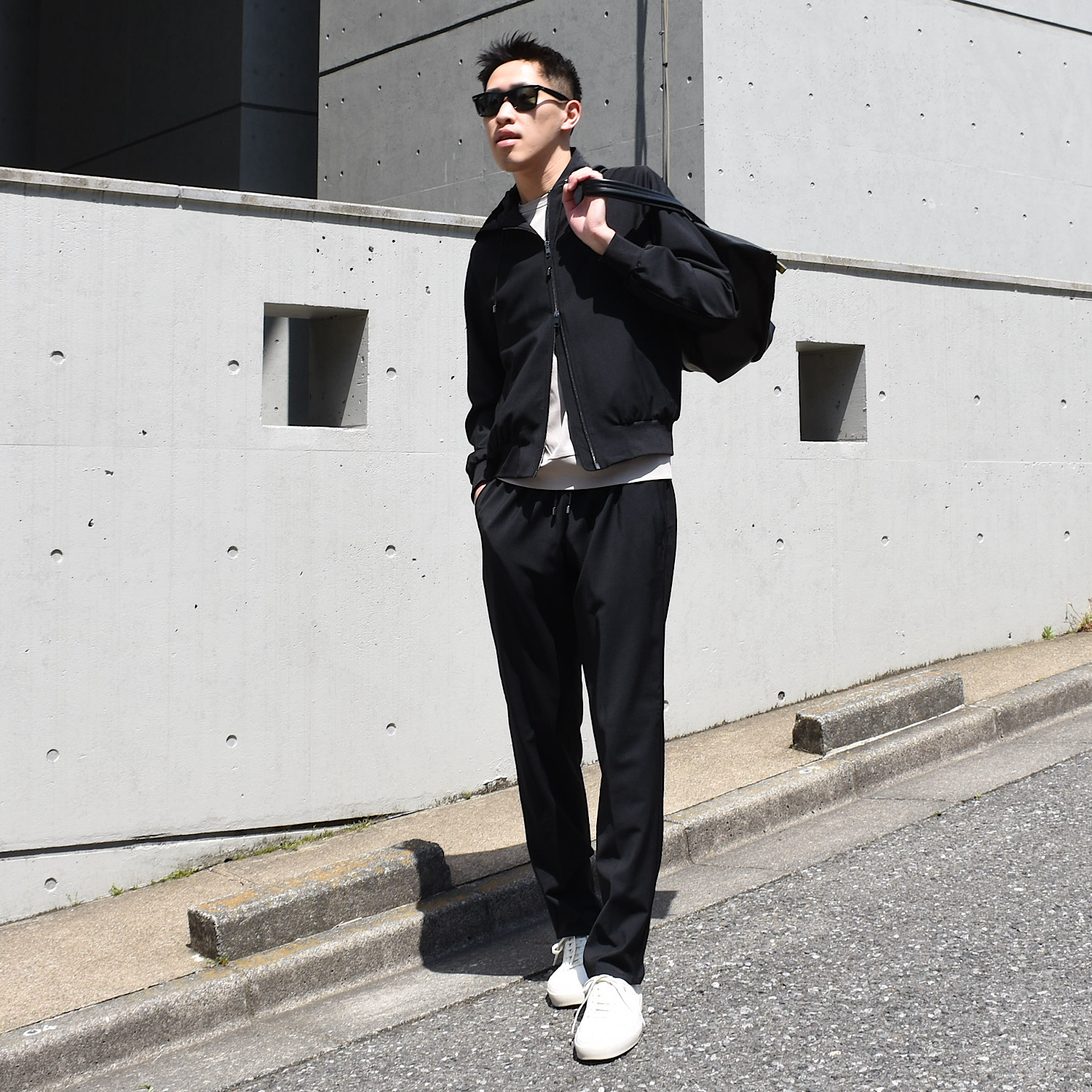 ・縦横のストレッチ性も備え、ストレスフリーな穿き心地が叶うハイブリッドな生地。ブラック1色のラインナップです。同じ生地を使ったニューモデルのパーカー"BONSI"も今後入荷します。