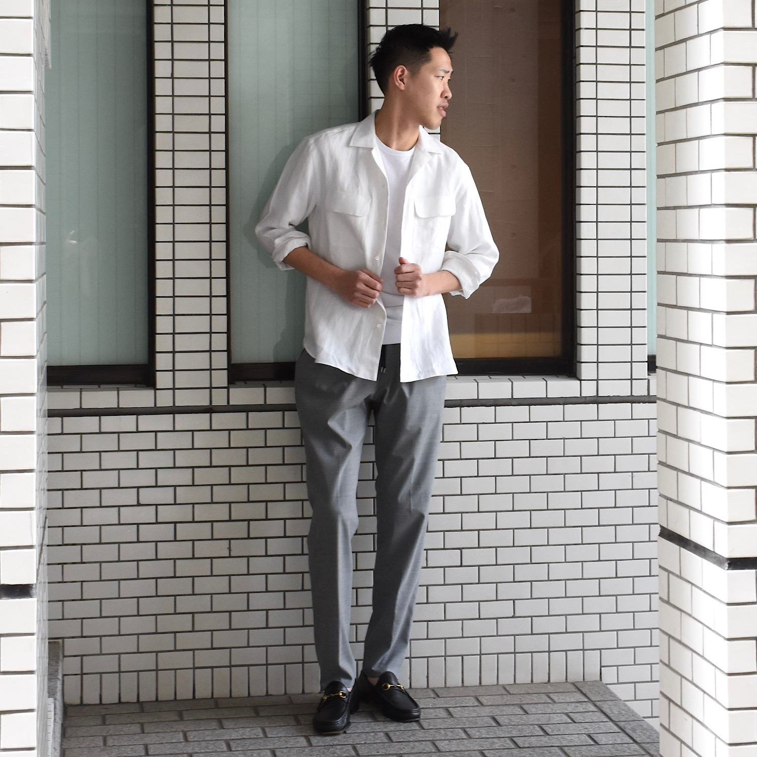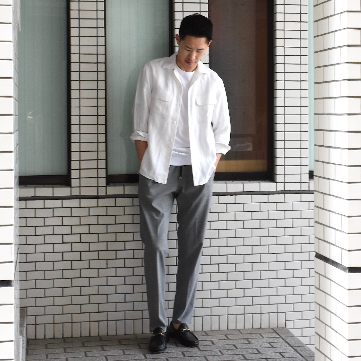 肌当たりが柔らかく着心地が良い上、生地表面のほのかな光沢が高級感を演出します。スッキリとしたシルエットで、大人のカジュアルシャツとして非常に使いやすい一枚です。着用サイズはSでジャストでした。
