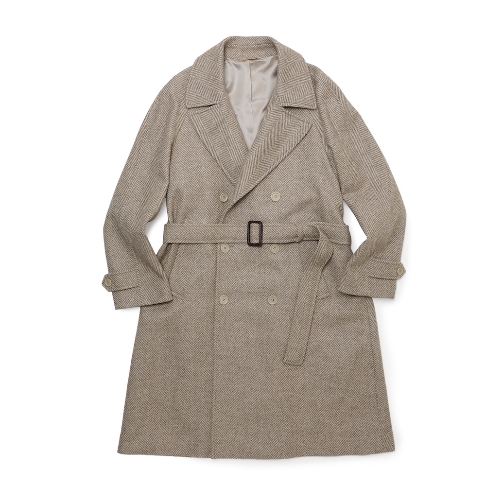デ・ペトリロ / ウール&カシミア へリンボーン ダブル ベルテッドコート/TW26048
