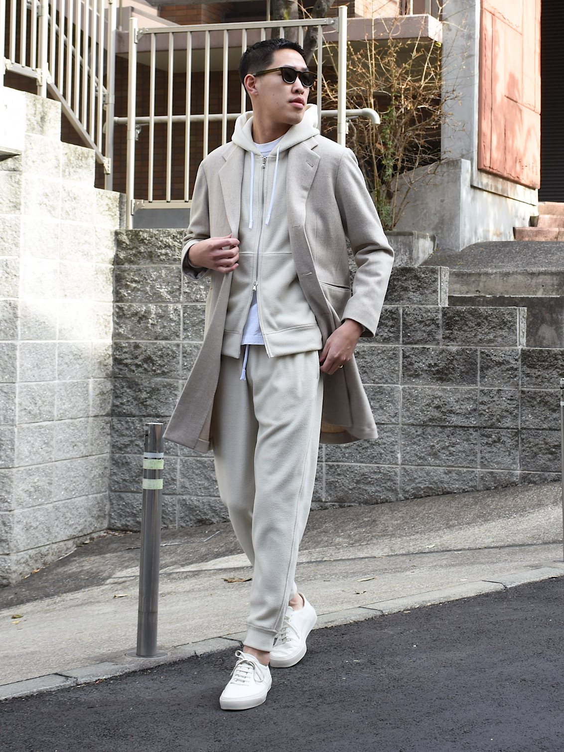人気のBRコート。どんなコーデにもハマりやすいAラインのシルエットは今年の冬にヘビロテ間違いなし。フリースのセットアップに合わせる事で品のあるカジュアルスタイルに。ベージュとアイボリーの組み合わせも是非、参考にしてみて下さい。