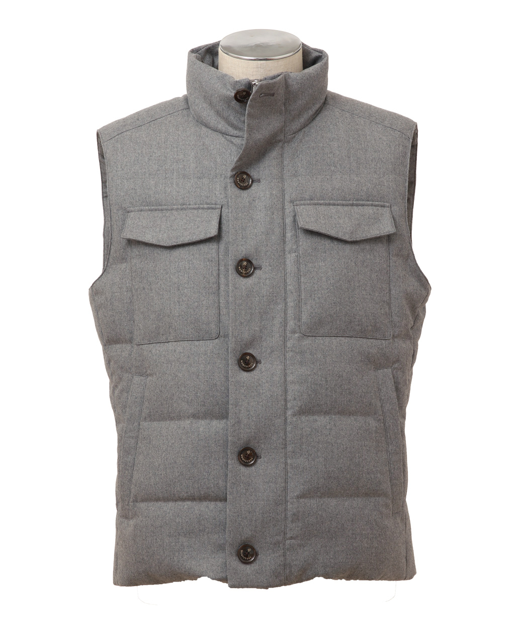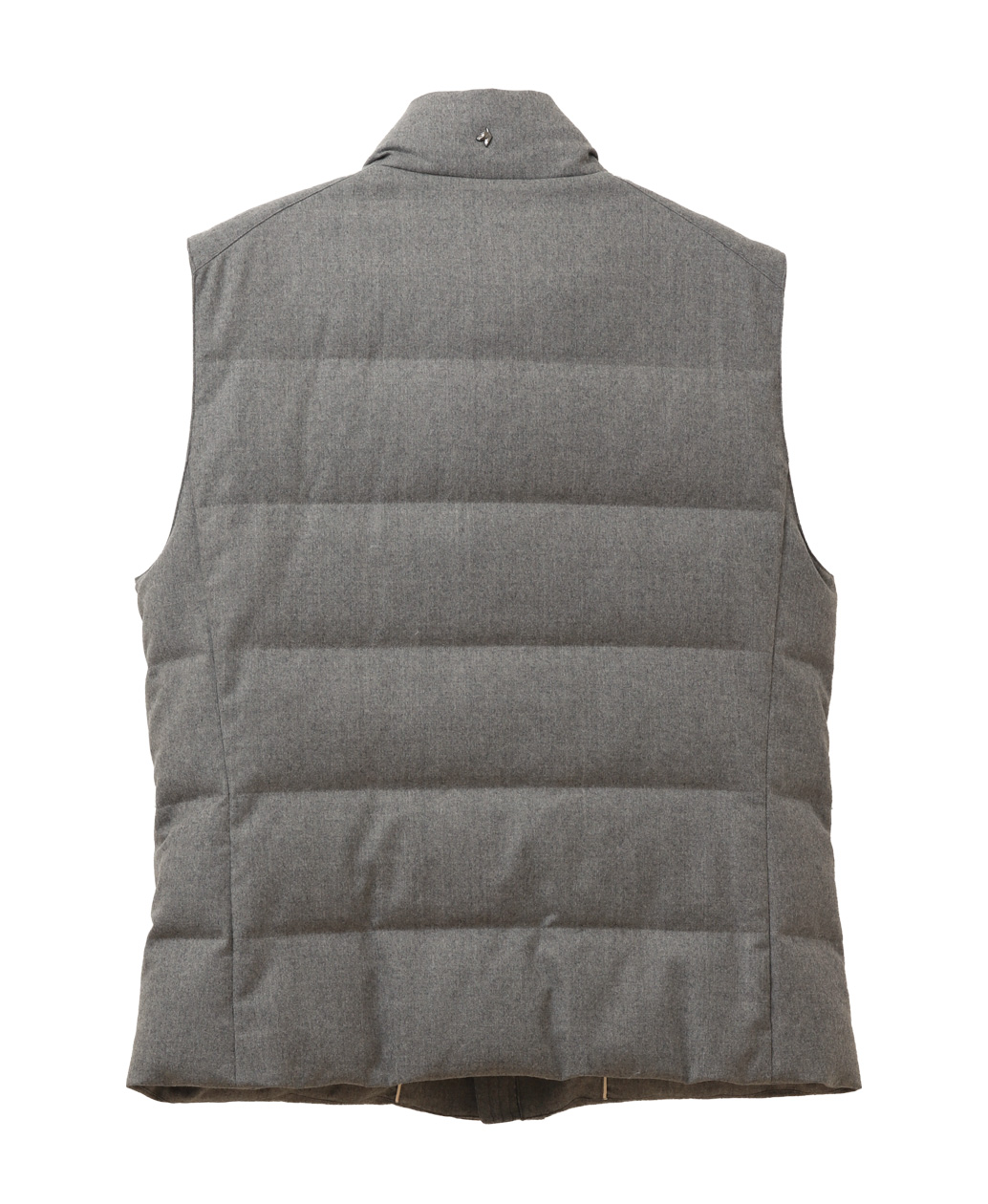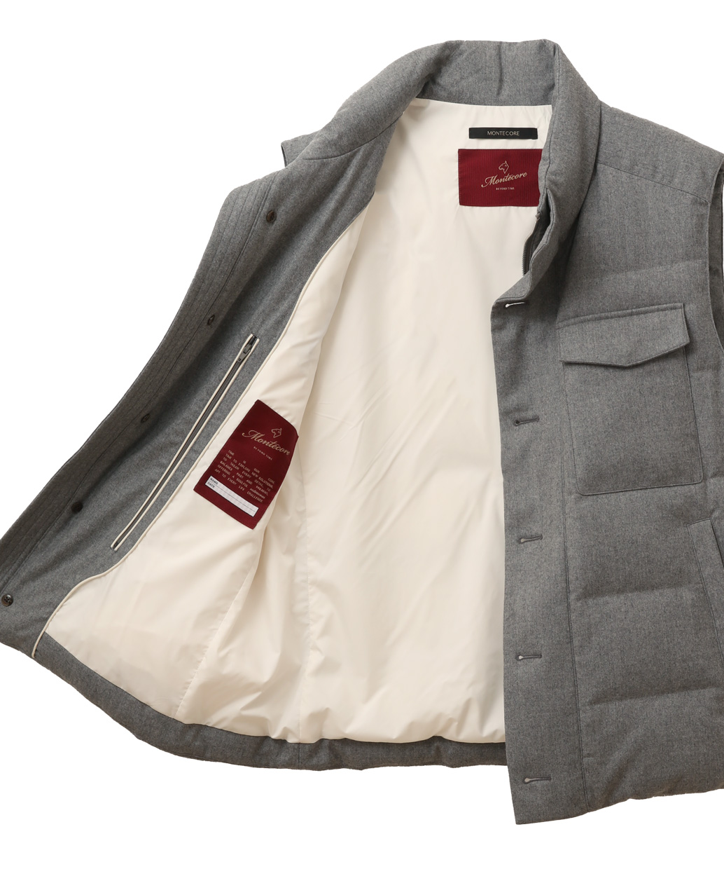 都会的レイヤードファッションが楽しめるウールフランネルダウンベスト。