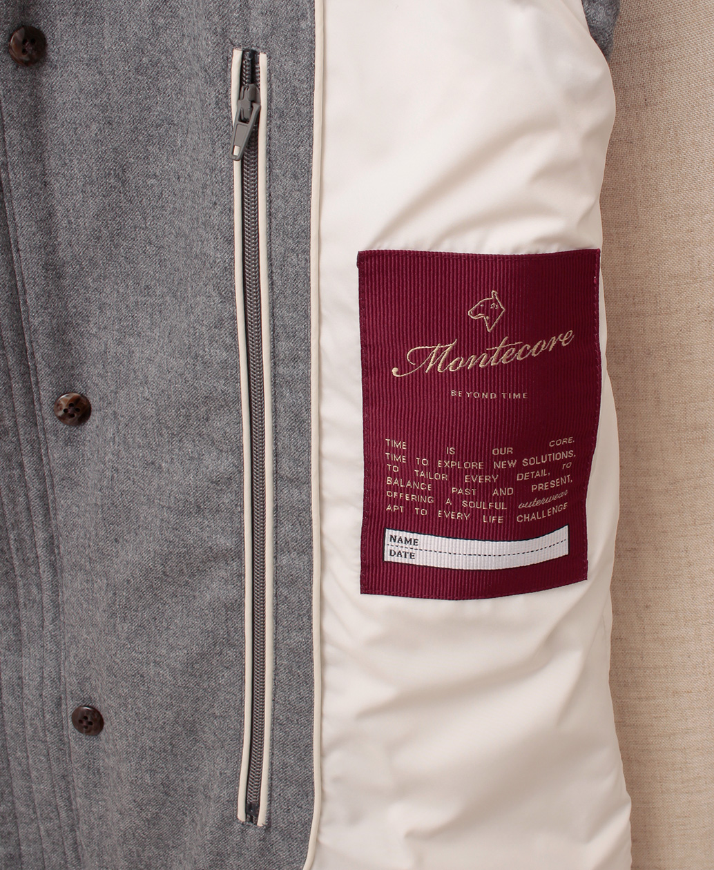 Montecore(モンテコーレ)は、2006年にイタリアのマルケで創業したアウターウエアブランド。テーラリングの技術を落とし込んだモーターサイクルウェアを作るブランドとしてスタート。テーラーの技術をスポーティーなアイテムに落とし込む技術は後々ダウンジャケットにウールやカシミヤなどのラグジュアリーな素材を使うようになります。近年では最新の機能素材を取り入れたアウターを数多くリリースしイタリアのメンズウエア界で注目を集めるようになっています。