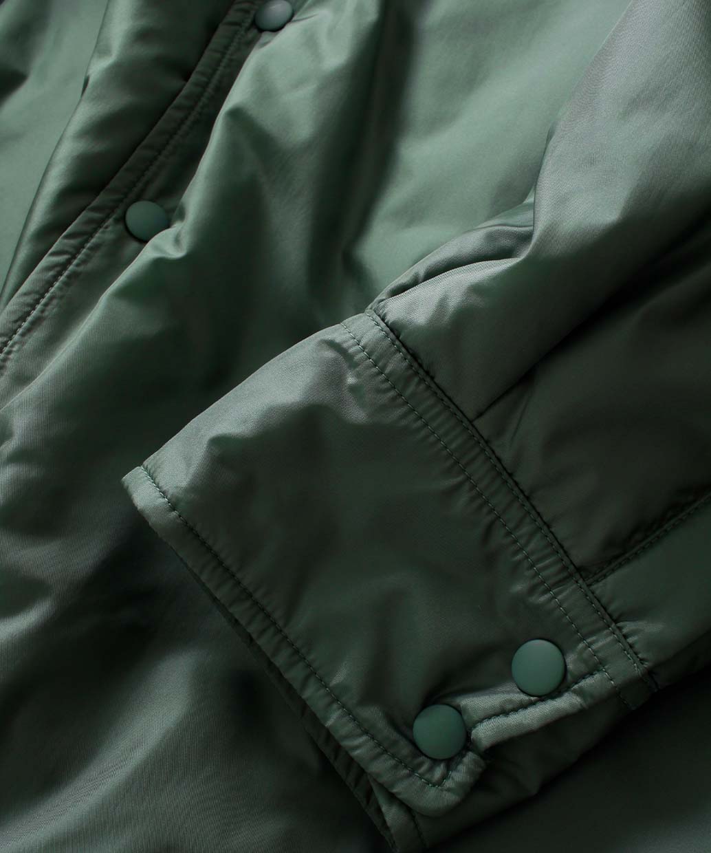 薄く柔らかなナイロン素材の中に「Thermore」と呼ばれるポリエステルの高機能中綿を薄くパフ状にして入れることで軽く暖かなブルゾンに仕上げています。アウターとしてはもちろんの事、シャツのデザインを採用する事でミドルレイヤーとしても使えるので、ウールのコートやレザージャケットの中にも着用が可能。季節を跨ぎ様々なスタイルで着用することができるブルゾンとなっています。
