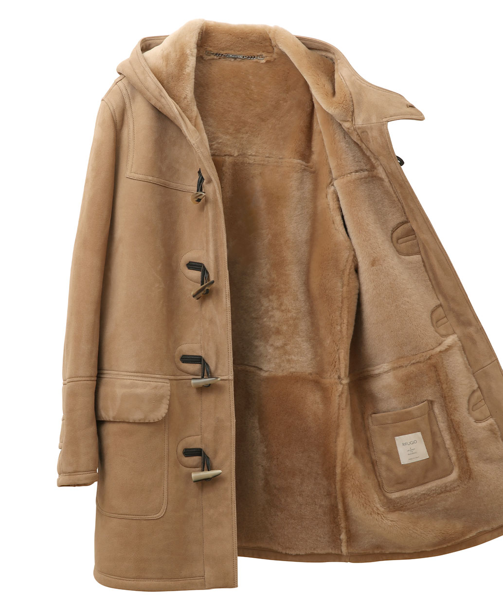 極上の暖かさと贅沢な質感を兼ね備えた、ムートン仕立てのラグジュアリーダッフル。