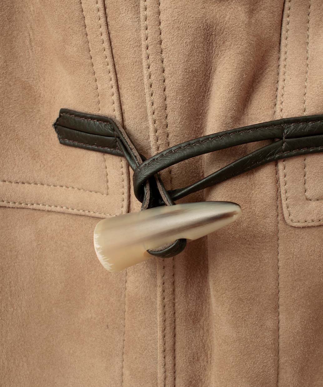 ムートンならではの柔らかな質感ときめ細やかな起毛感が、装いに品格ある高級感と確かな存在感をプラス。クラシックなダッフルコートの伝統的なディテールを継承しつつも、洗練されたモダンなデザインに昇華させ、コーディネートの主役として際立つ一着です。