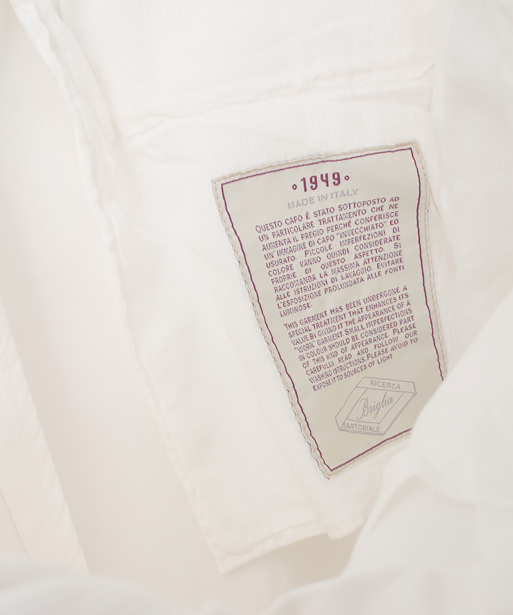 BRIGLIA 1949〈ブリリア1949〉はナポリの東、ベスビオ山の麓を拠点にメンズのパンツに特化したファクトリーとして30年以上の歴史を重ねるフォーテンインダストリー社が手掛けるパンツブランド。イタリアに根付くサルトリアの知識と技術、伝統に誇りを持ちながらもグローバルに視野を広げ、新たなチャレンジを念頭に第2世代となるMichele Carilloが立ち上げたニューブランドです。