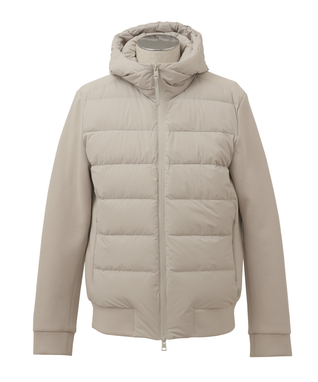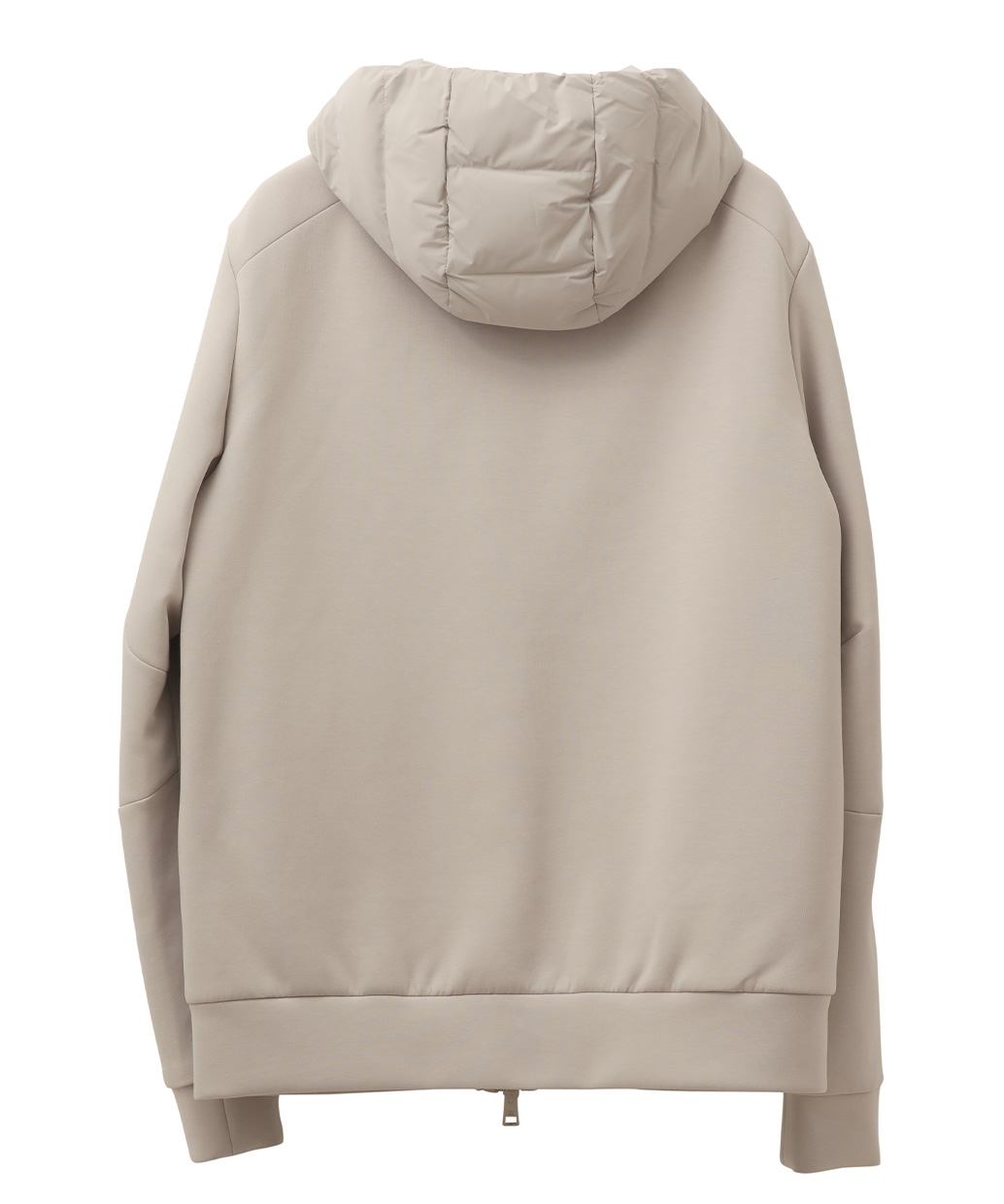 ジャージー素材×ダウンのコンビネーションで仕上げたパーカーブルゾン。