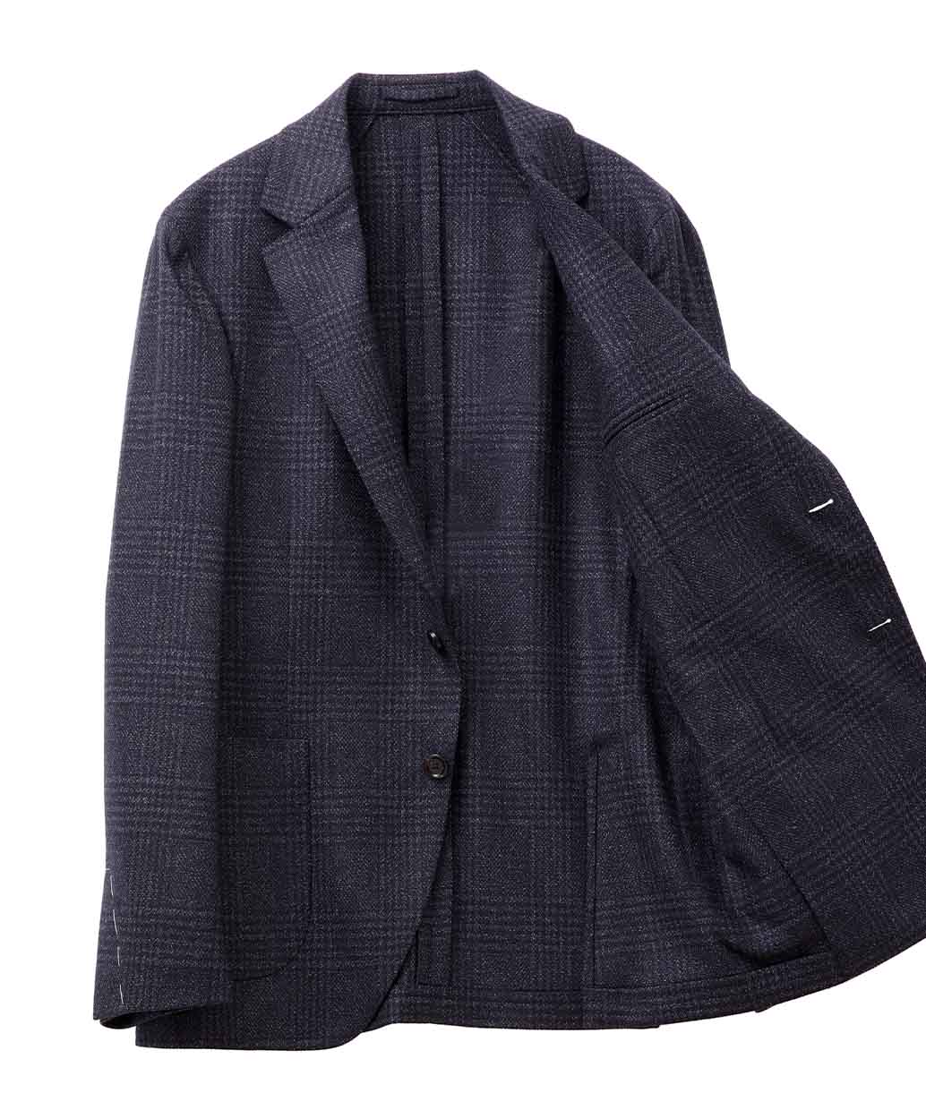 グレンチェック柄の上品な風合いとトラディショナルな魅力をまとうジャケット。