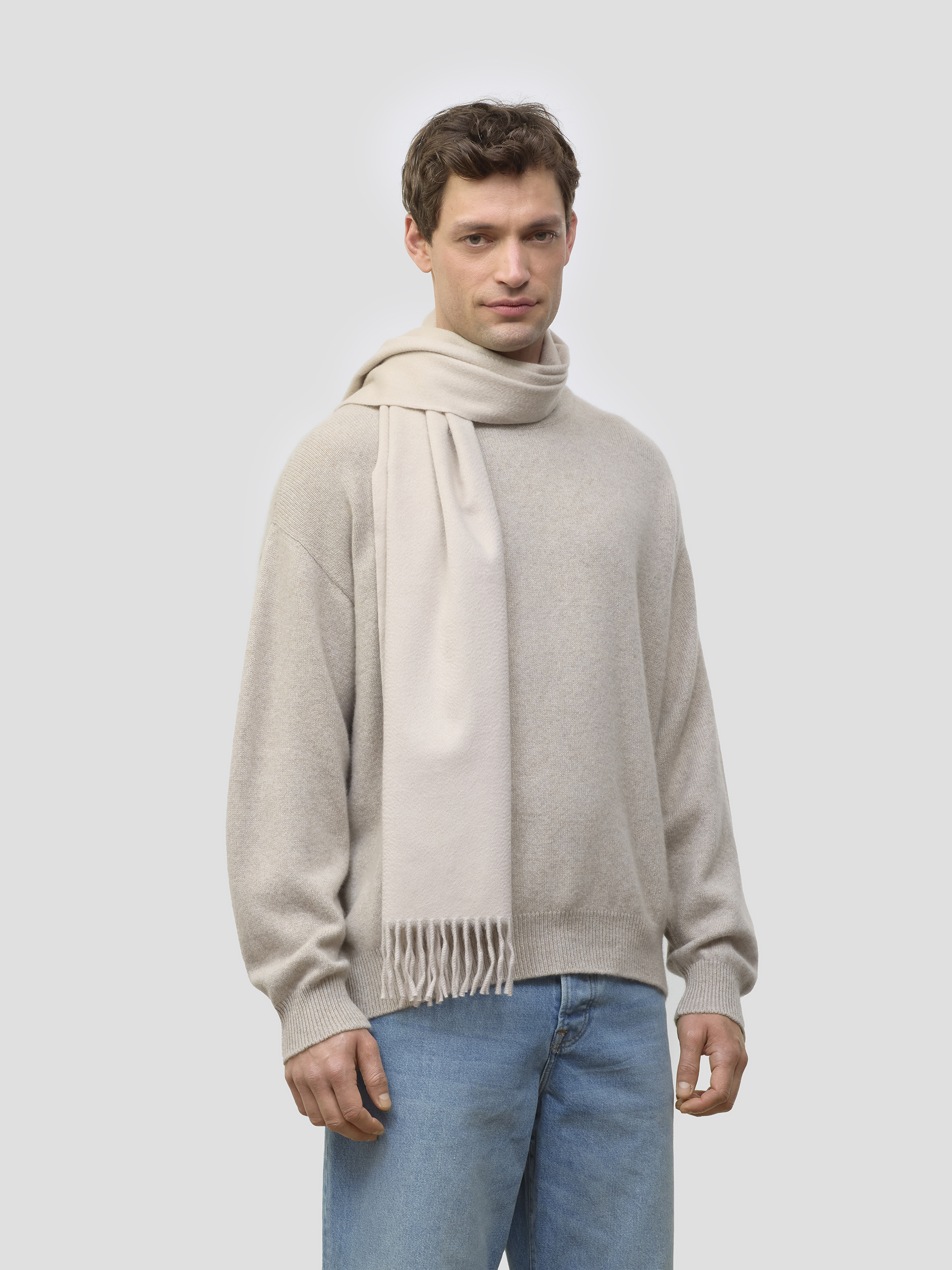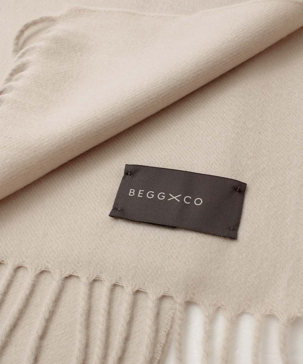 BEGG×CO(ベグ アンド コー)の定番モデル「Arran(アラン)」は、程よい厚みが魅力で、デイリーに使いやすいバランスの取れた一枚です。カシミヤ100%の生地を丁寧に起毛させることで、極上の肌触りと軽やかな暖かさを両立しています。