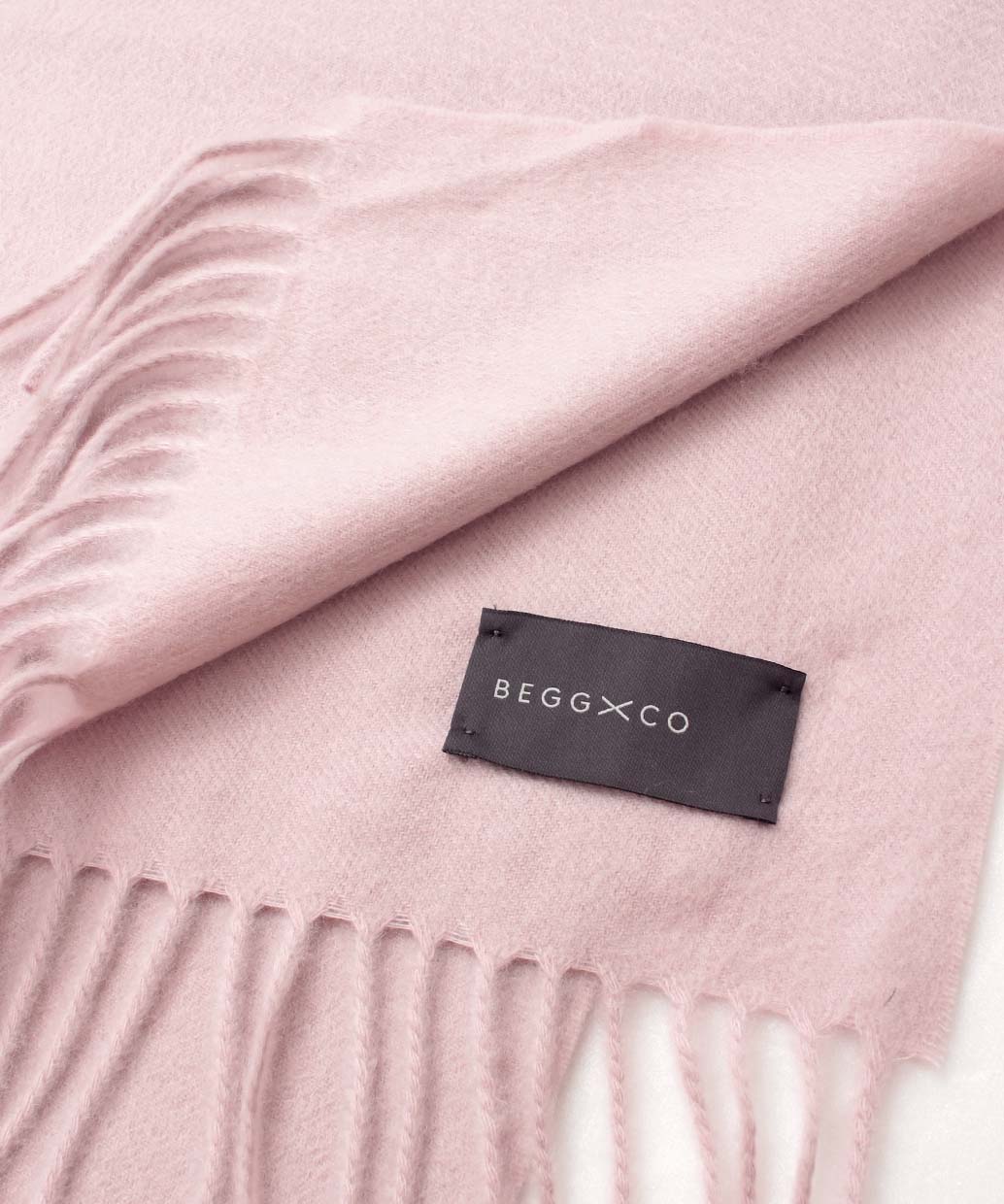 素材には、内モンゴルの遊牧民から調達した 15.5ミクロンの超極細カシミヤ を使用。イタリアで特別仕様に紡績した糸を、Begg × Co のスコットランド自社工場でドビー織機を使って丁寧に織り上げています。程よい厚みと高密度の織りは、驚くほどの柔らかさと共に優れた保温性を発揮し、冬の装いに欠かせない一枚です。