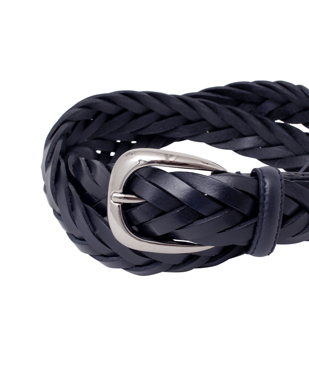 上質なナッパレザーを丁寧に編み上げた、エレガントなメッシュベルト。しなやかでハリのあるレザーが美しいツヤを放ち、ウエストまわりを品良く引き締めてくれます。ラウンドフォルムの真鍮製バックルと先端のプンターレが、クラシックでありながらモダンなアクセントに。スーツやジャケットスタイルはもちろん、きれいめなカジュアルにも合わせやすい一本です。