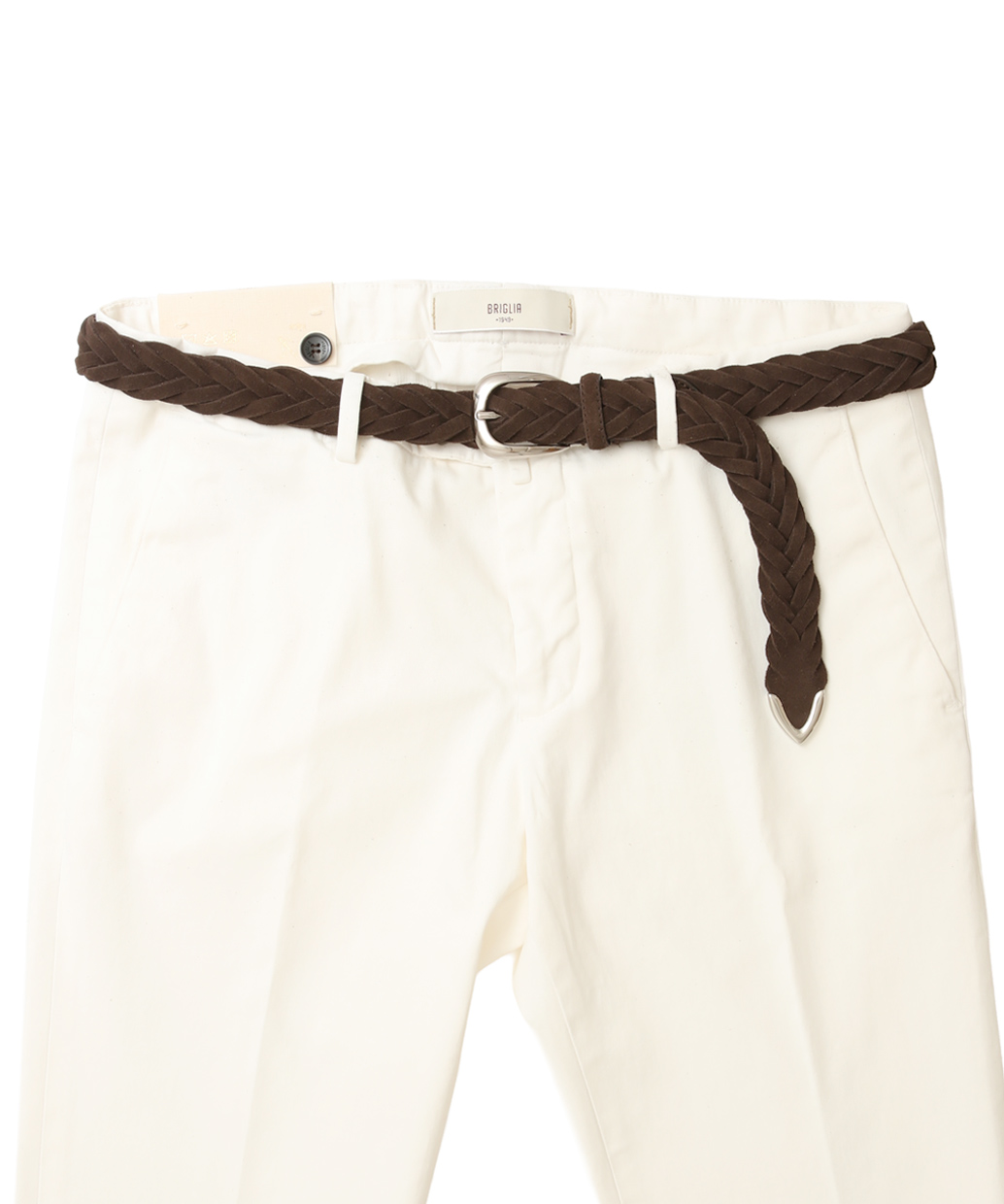 干場義雅氏監修による別注モデルとして、素材選びからディテールに至るまでこだわり抜いた一本。イタリアの職人技が光るスウェードベルトは、季節を問わずスタイリングに取り入れやすい万能アイテムです。