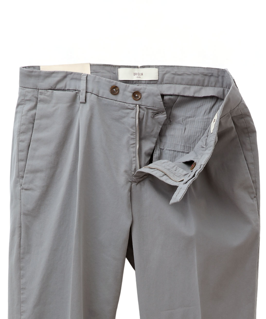 BRIGLIA 1949 BG07 コットンストレッチ ワンプリーツ テーパードパンツ
