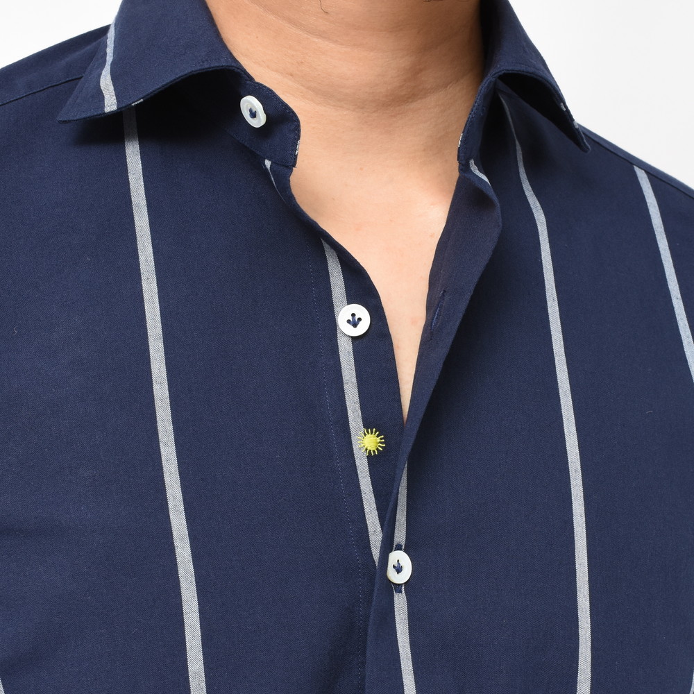 グラウンドカラーはネイビー、ストライプはホワイトというそこだけ聞くと普通なんですが、ピッチの取り方、織りによる色のカスレ具合などかなりセンスが良い仕事ぶりだと思います。