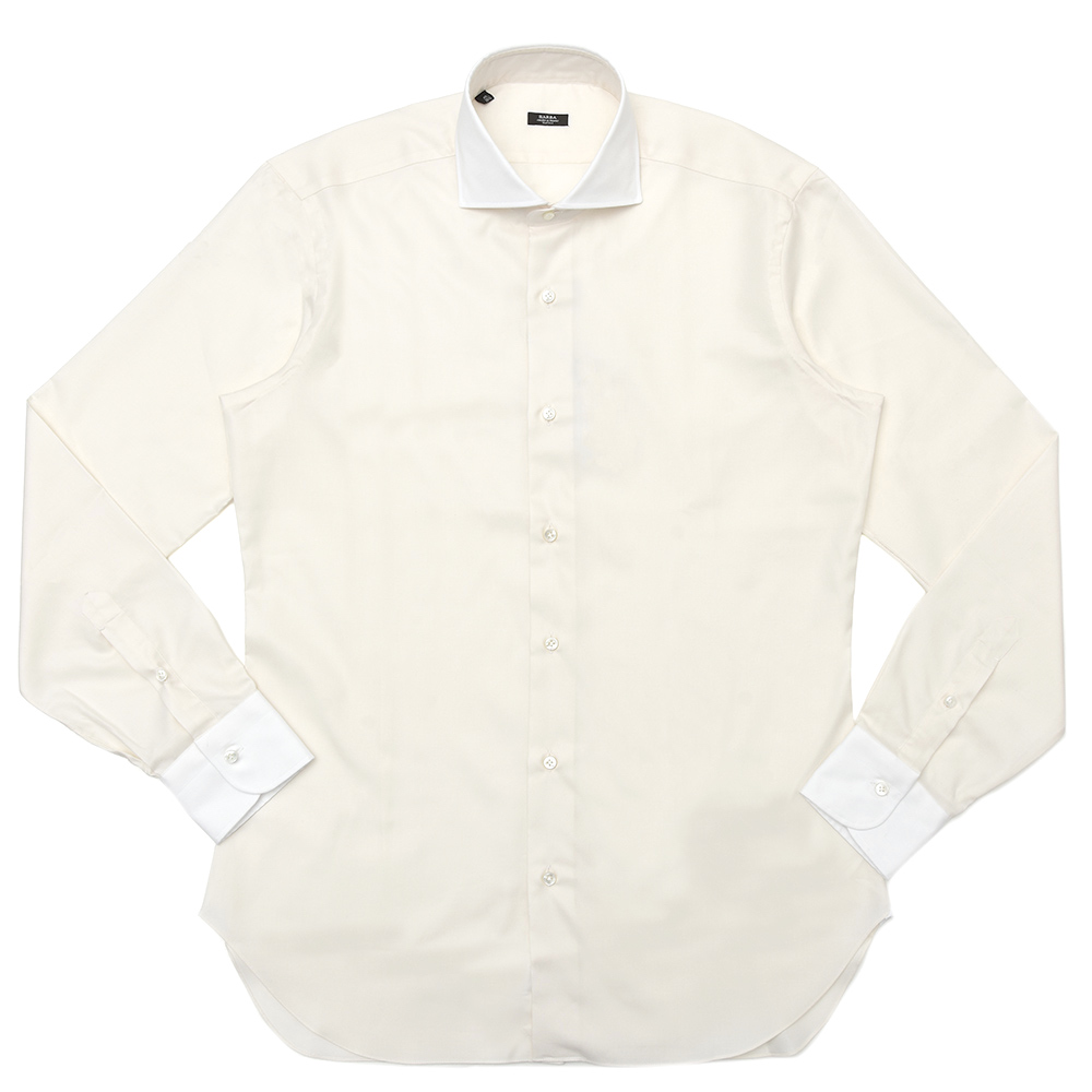 バルバの代表的なワイドカラー406を採用したコチラは、ホワイト×ベージュのクレリック仕様にてご用意致しました。