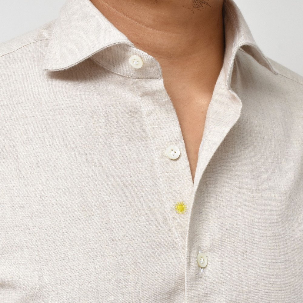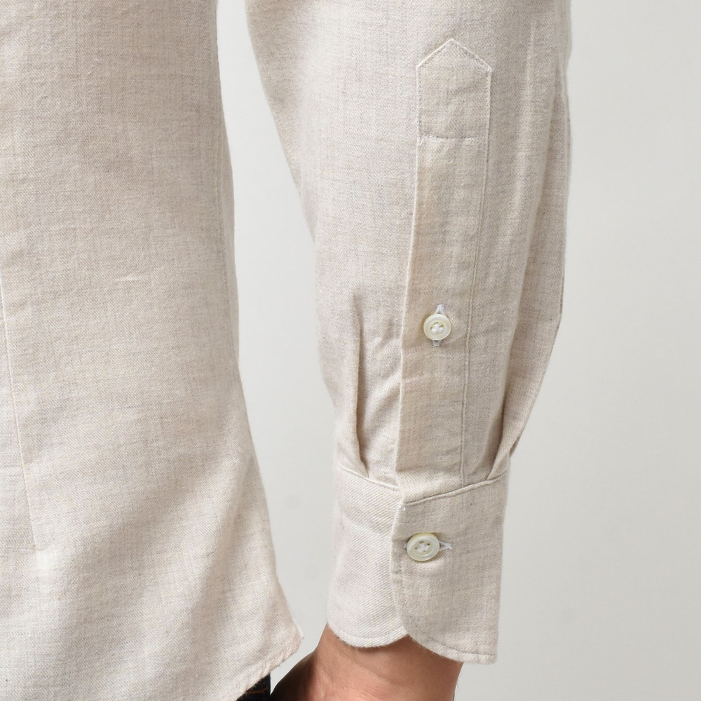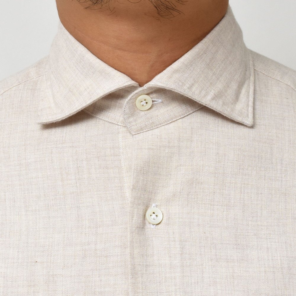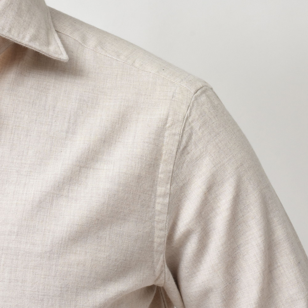 Giannetto(ジャンネット)の優しさあふれるコットンネルシャツはベージュカラーをベースにほんのり杢調のメランジ発色を採用したクリーミーモデルです。