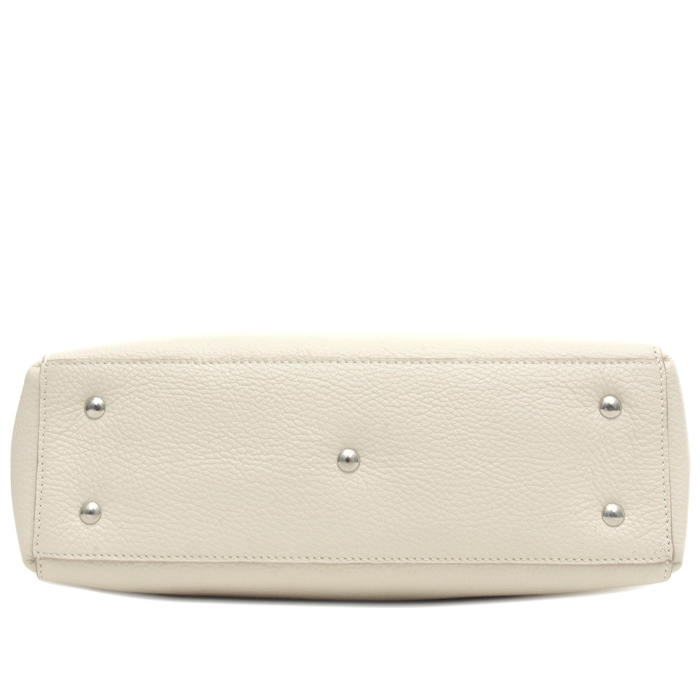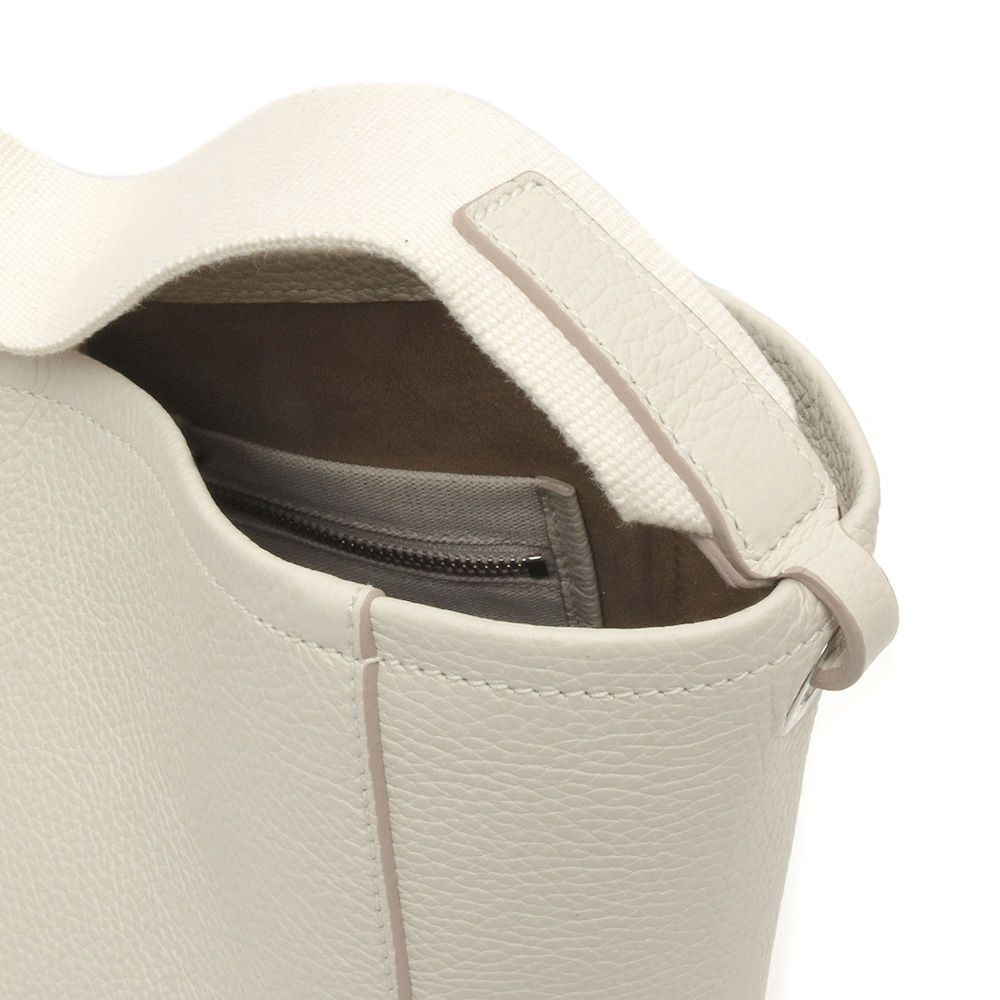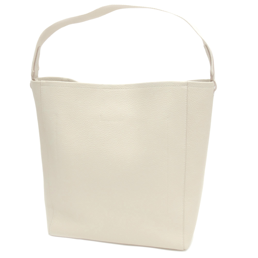 あえて斜め掛けできないショルダーの長さにする事で手に提げて持つ事ができ、凄く新鮮な見え方になるんですよね。