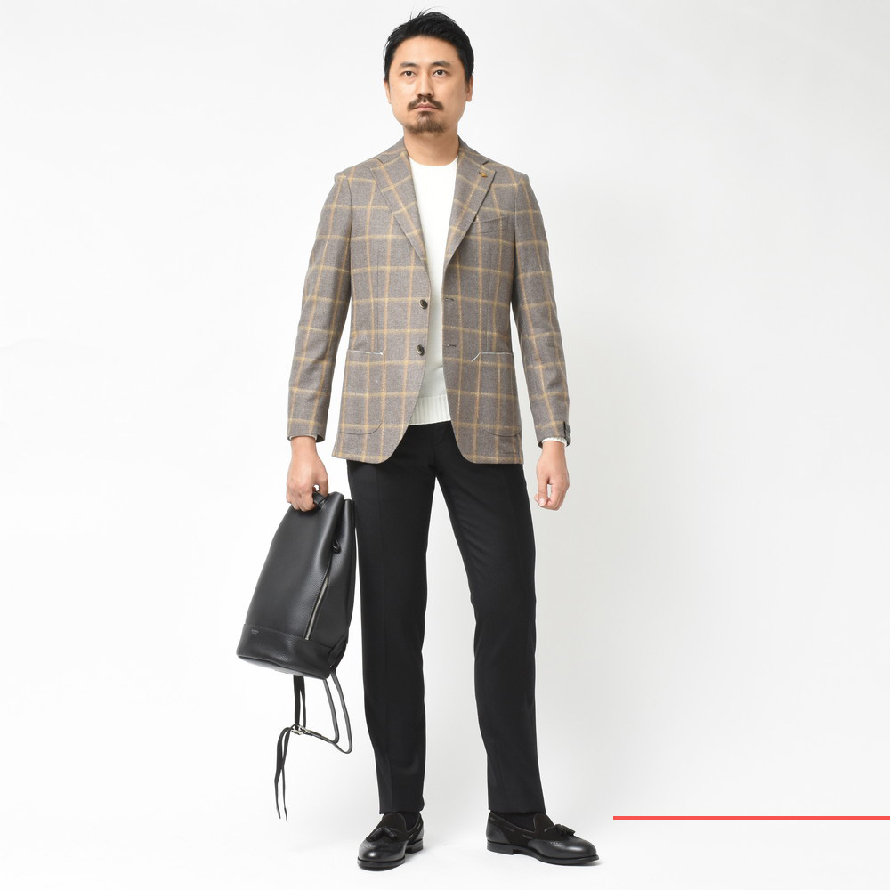 『ジャケットにも合わせられるボンサック・・・、今まで見たことがなかったかもしれません。』
