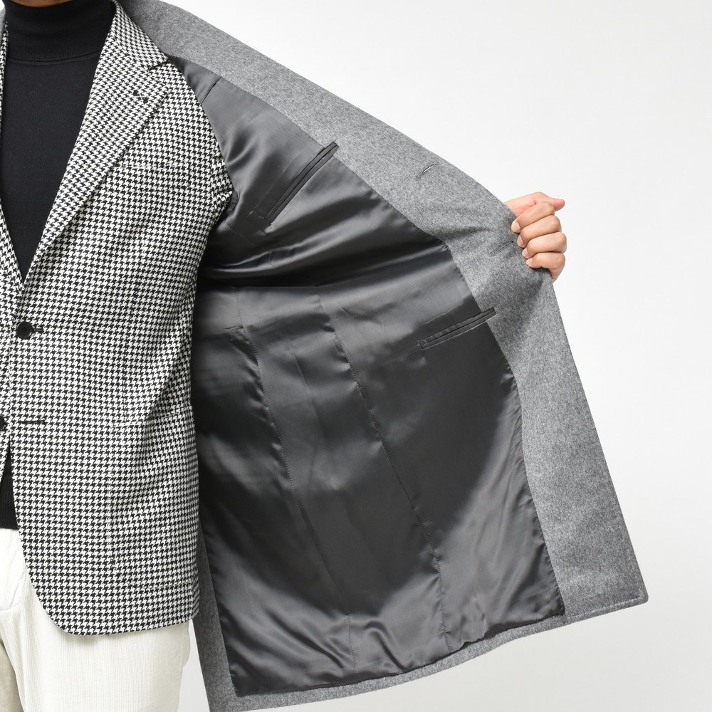 襟の雰囲気、肩の流れ、立体感のあるシルエット、羽織ったときのムード、全て素晴らしく整った最高クオリティのチェスターにだと思います。