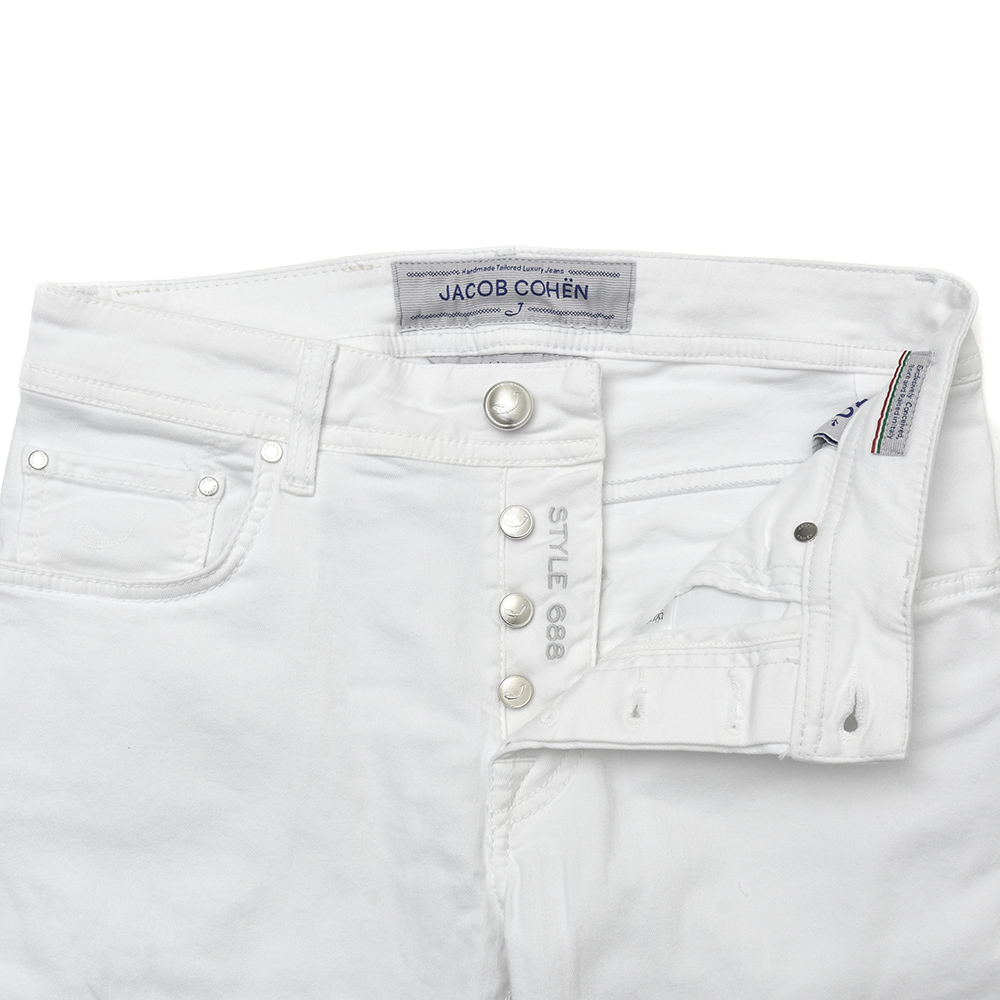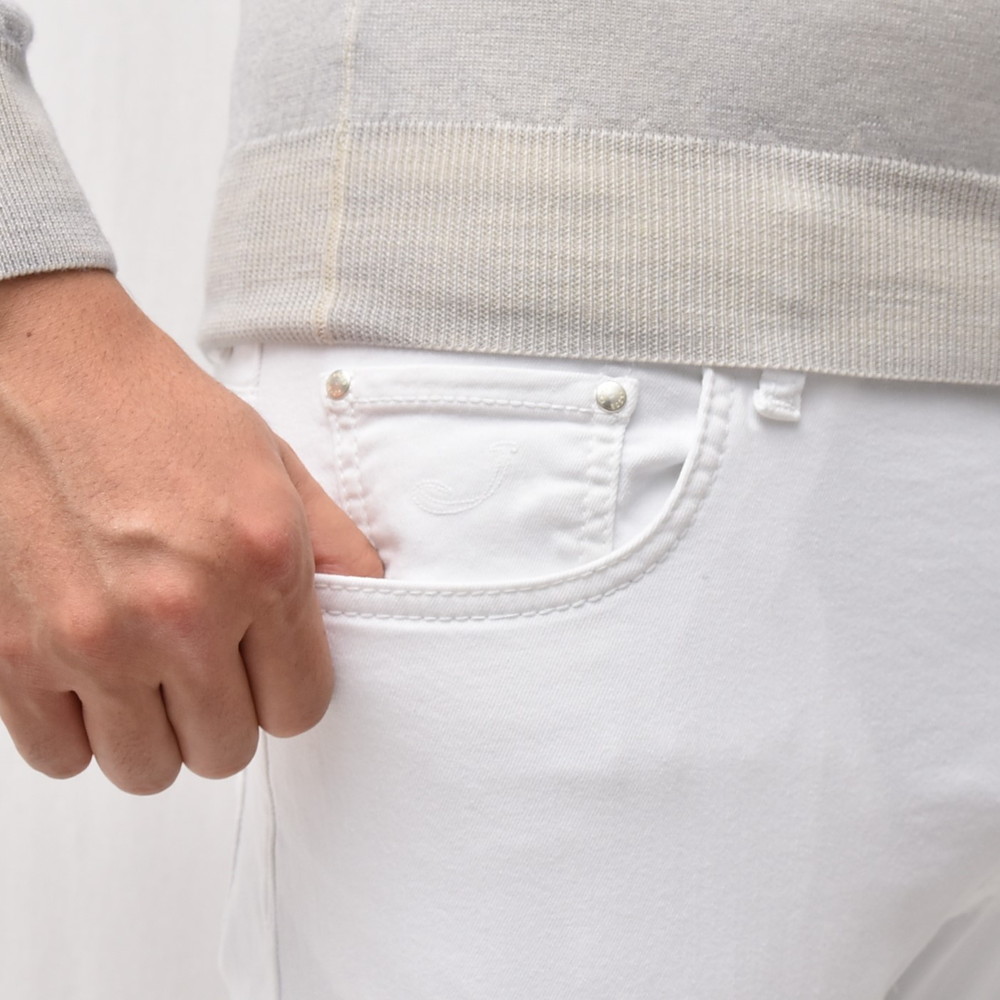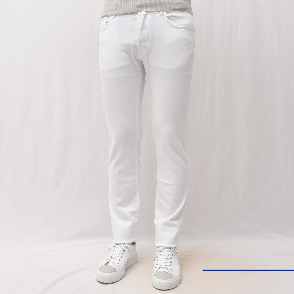 カラーステッチや個性溢れるハラコパッチのデザインで毎シーズン楽しませてくれるJACOB COHEN(ヤコブコーエン)のジーンズですが、敢えてそういった主張あるデザインを封印し、全てのディティールを白で統一したこちらのモデル。
