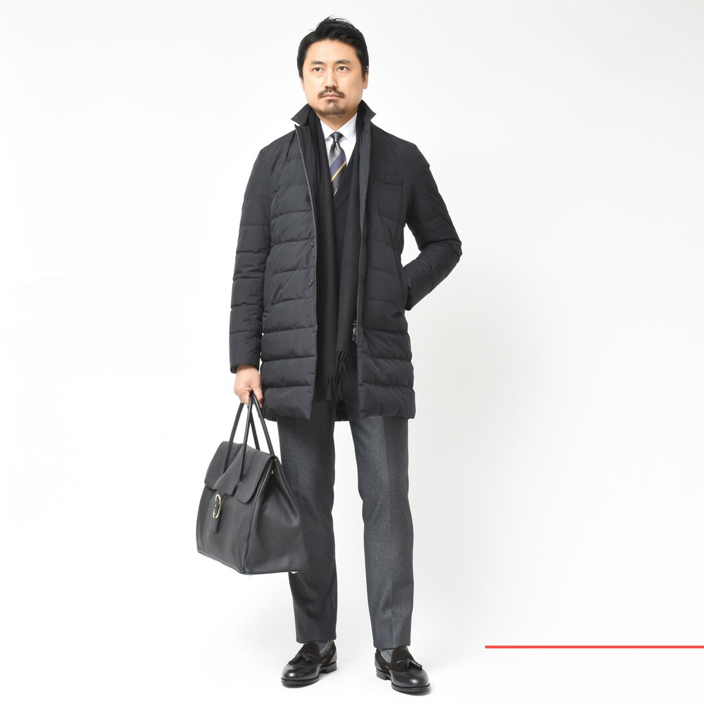 ダウンコートであるにも関わらずこの整ったシルエットが素晴らしい一着になっておりまして、オンオフ兼用で使えてしまう懐の深さも素敵なところですよね。