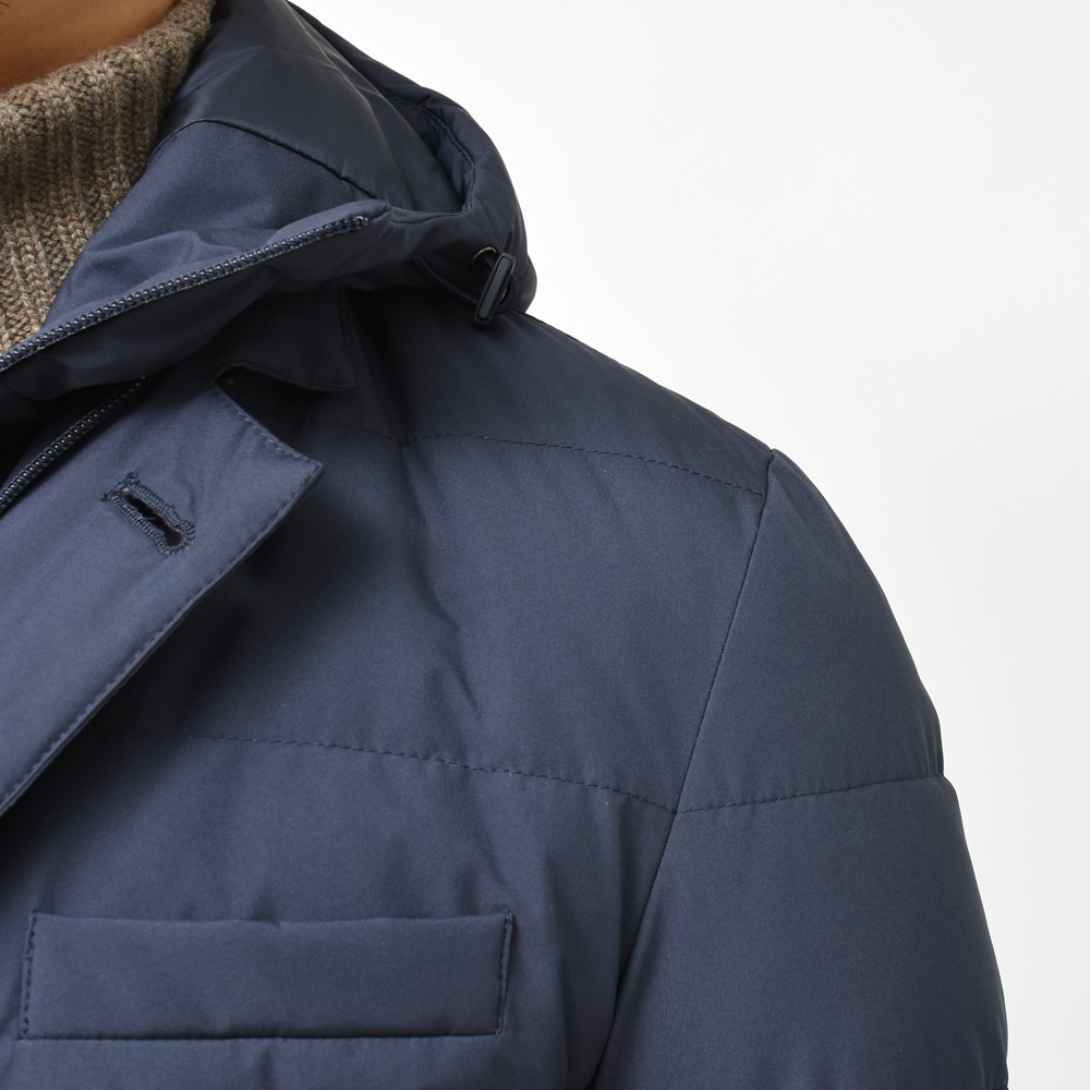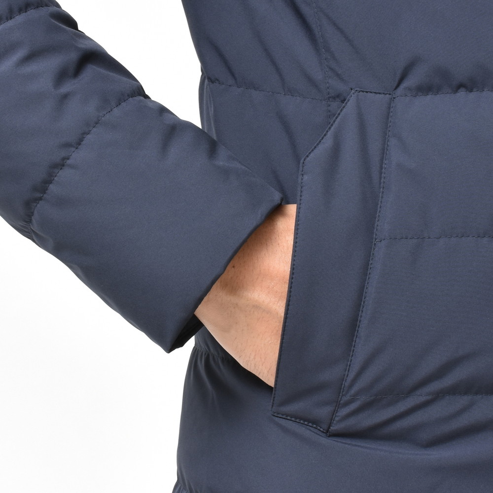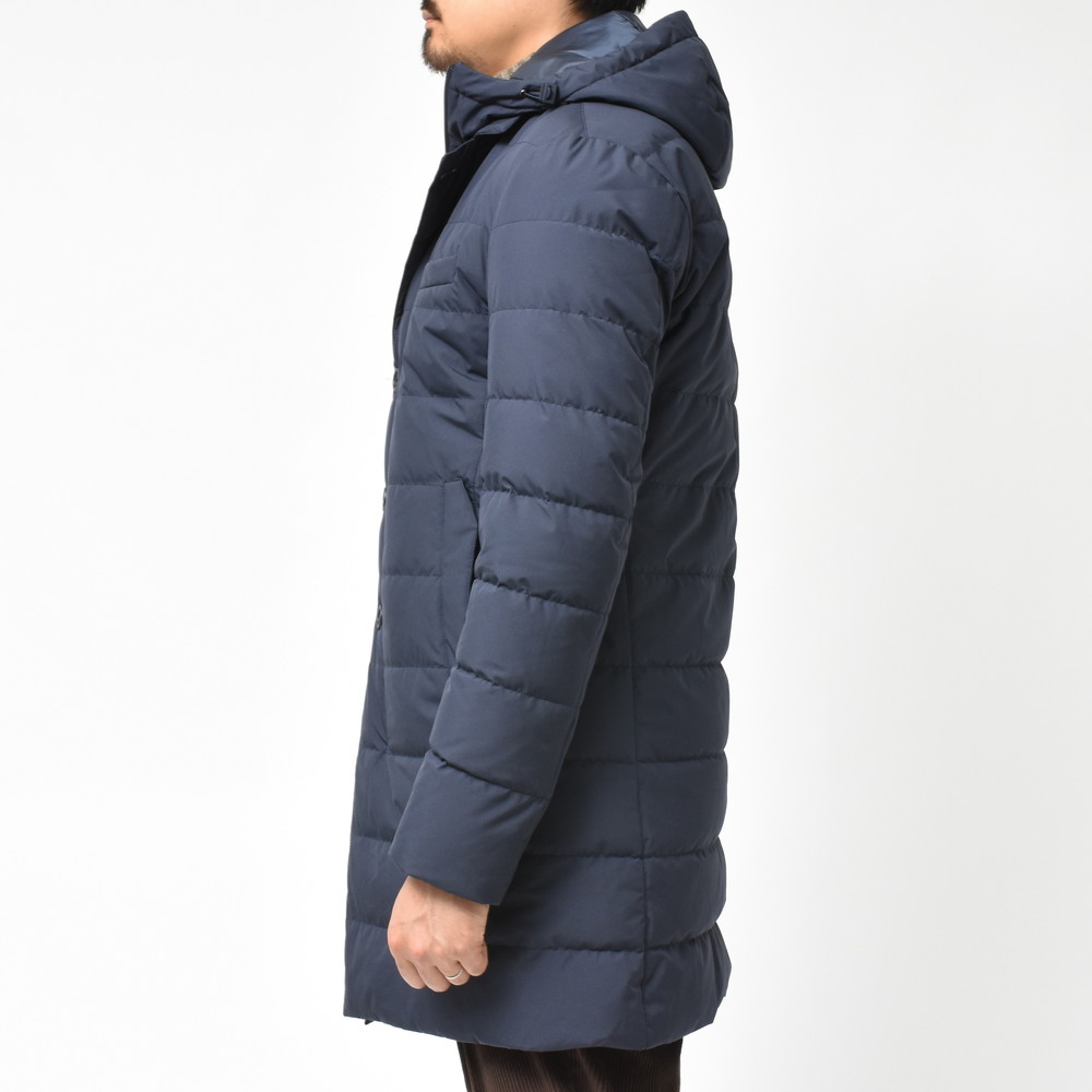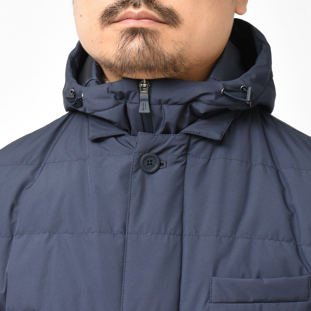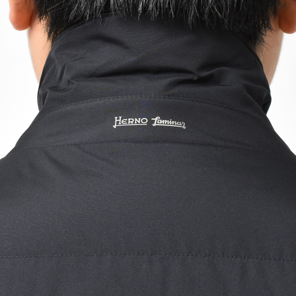 アウトシェルはLaminarラミナーラインという事でお馴染みのしなやかゴアテックスを採用、シックでモダン、ほんのりギア的な先進性を漂わせつつも落ち着いた雰囲気を感じさせ、中綿としてダウンをパッキング。非常に優れた防寒性能と、エレガントで上品なルックスを両立したHERNOらしい仕上がりになっています。
