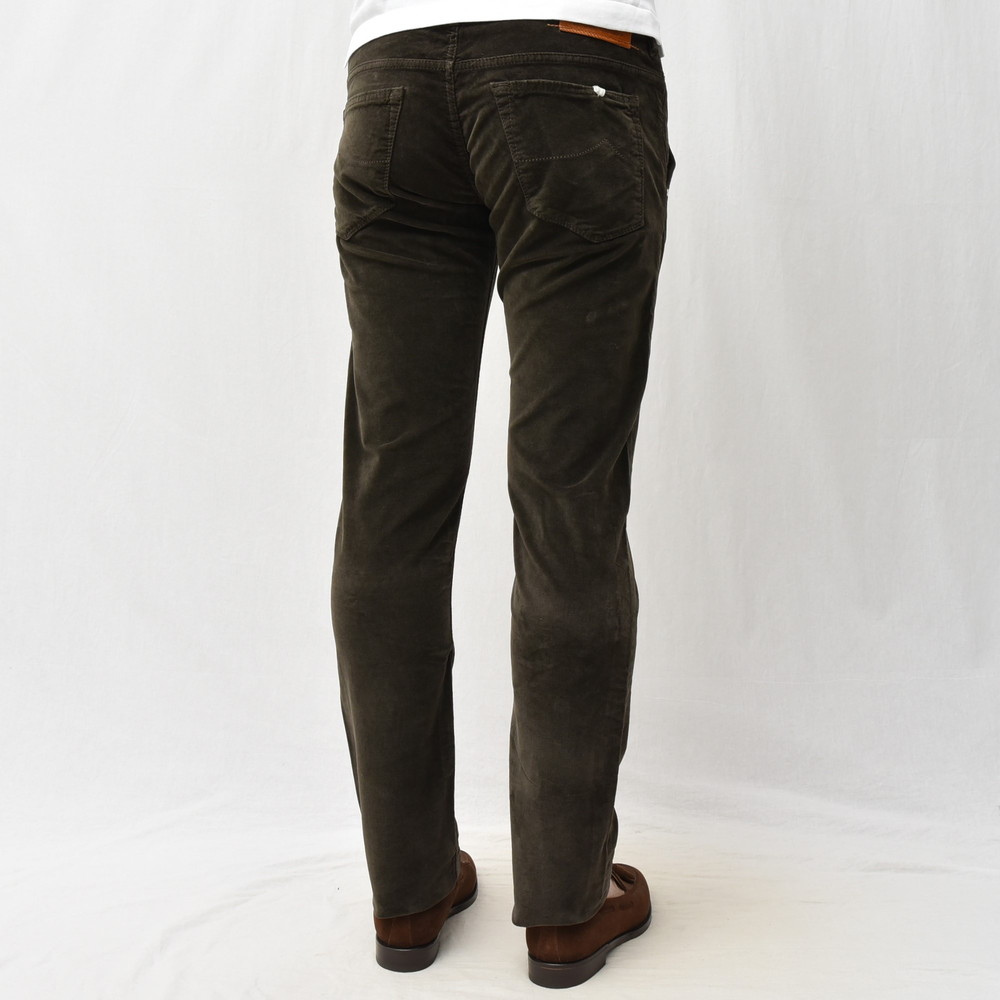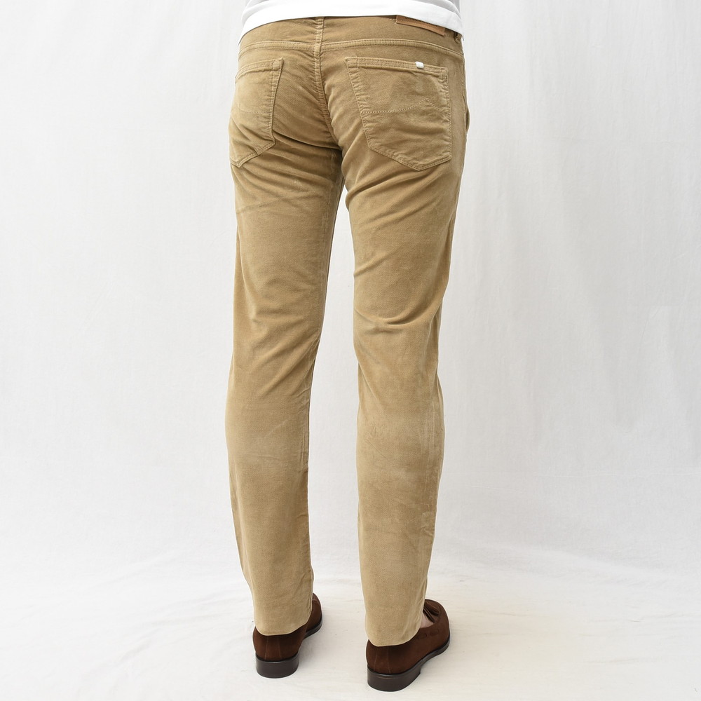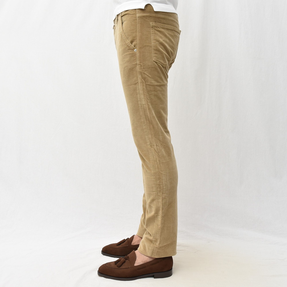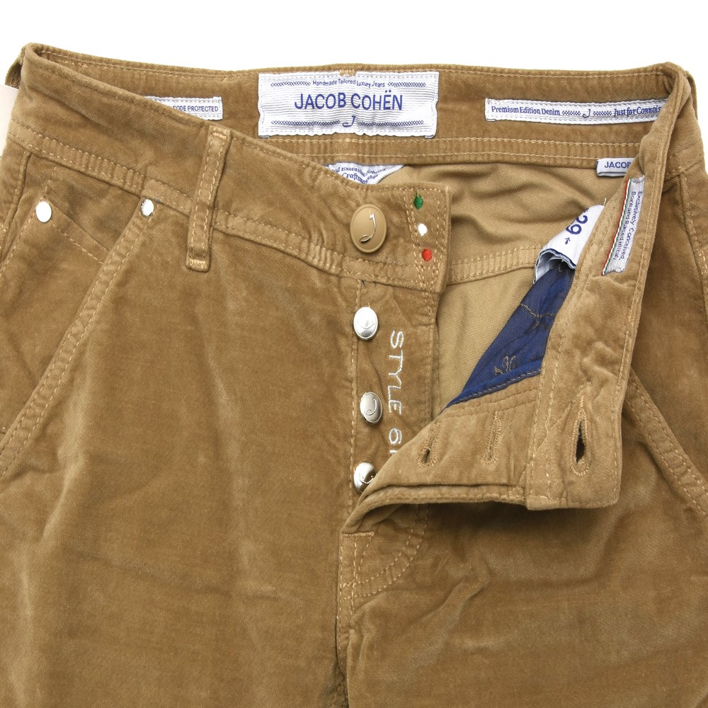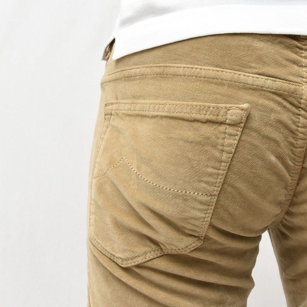 キメの細かくないベルベットの様な、敢えてカジュアル色を強くした起毛素材を用いることで独特な表情を生み出しているJACOB COHENならではの一本ではないでしょうか。