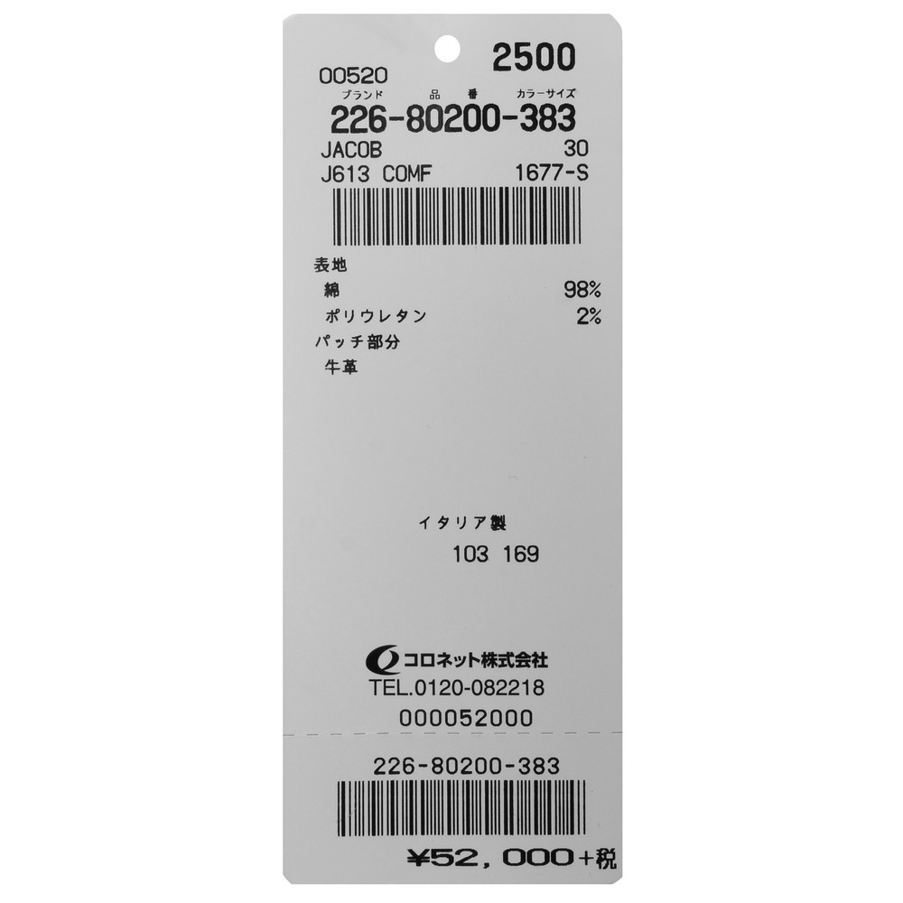 ほんのりと光沢を感じさせるコットンフランネル素材を使用したJACOB COHEN(ヤコブコーエン)J613タイトストレートパンツは、5ポケットパンツをベースにしつつもスラントポケットを採用し、カジュアルさを少し抑える事で大人なイメージをプラスしています。
