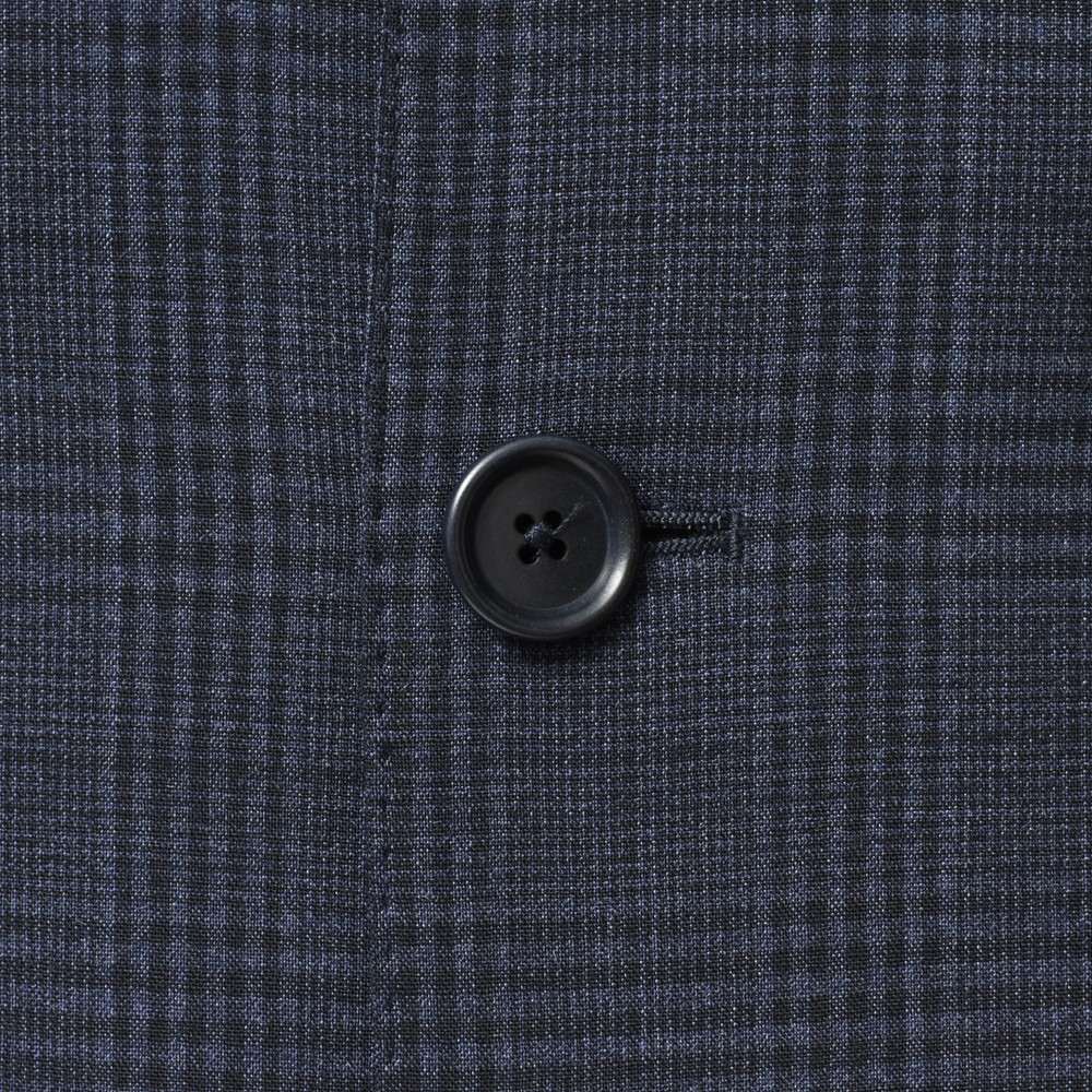 オーバーチェックの見え方に影響するので強く畝は付けていないですが、薄っすら凹凸を感じさせる爽やかな生地感で、色も濃すぎないネイビーというバランスが素晴らしいと思います。