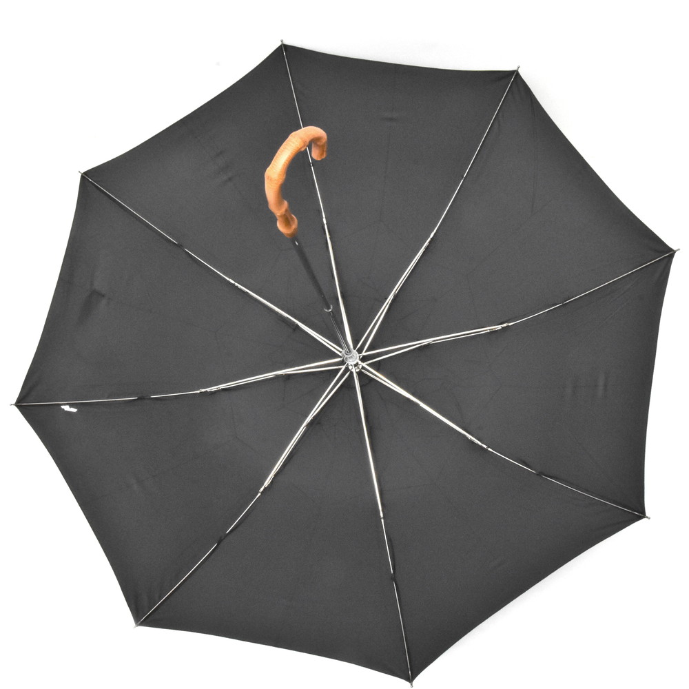 撥水性を持たせたポリエステルを使用し、ハンドルはワンギー(竹)を採用。折り畳み傘という事でコンパクト性とシャープさを重視し、且つエレガントなルックスになるようチョイスしたモデルです。