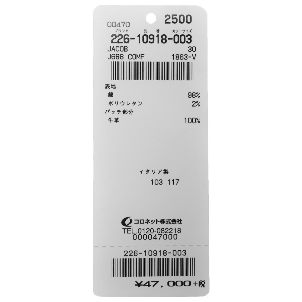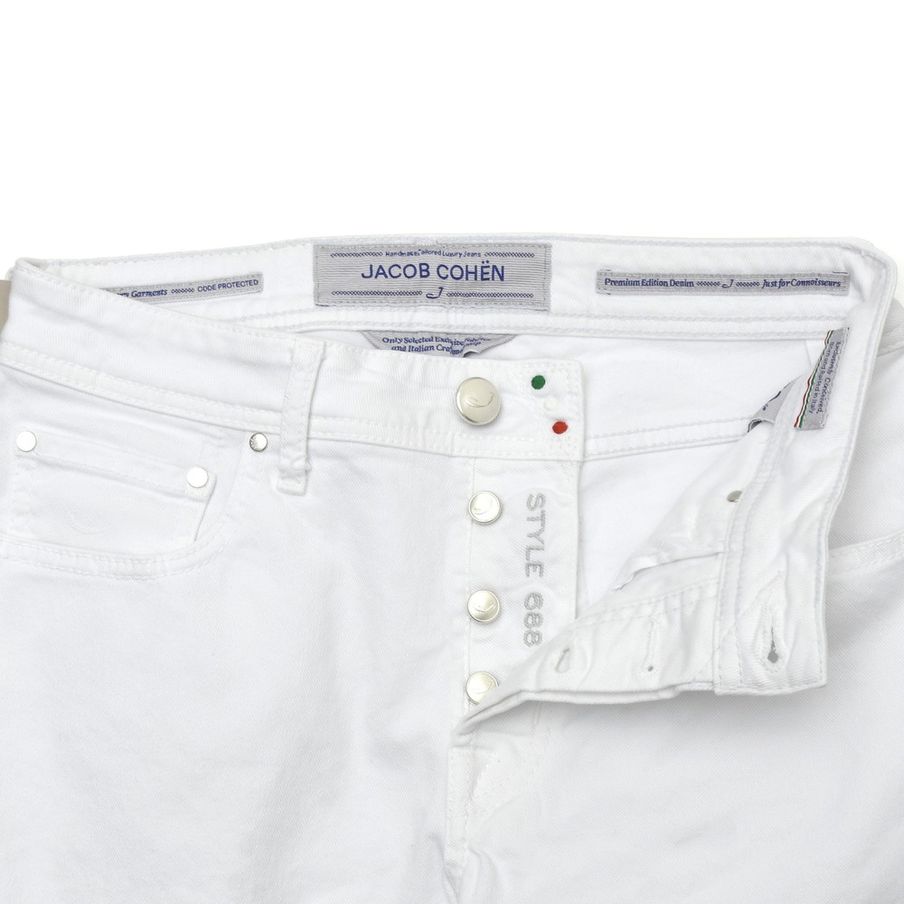 個性溢れるデザインでいつも楽しませてくれるハラコパッチは敢えてシンプルに、カラーステッチなども封印し、全てのディティールを白で統一したJACOB COHEN(ヤコブコーエン)J688タイトストレートデニム。