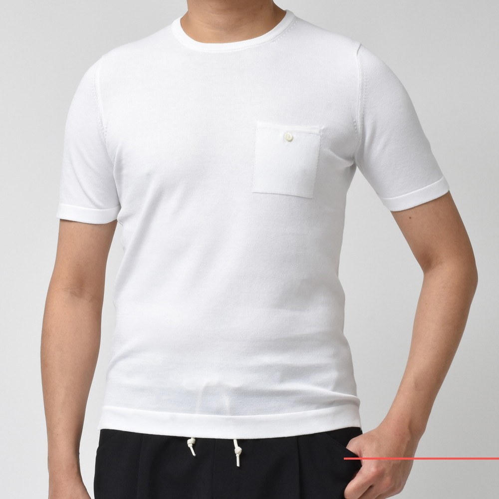 Gran Sasso(グランサッソ)では登場以来高い人気を誇る夏の定番アイテムとなった半袖クルーネックニット、通称“ニットT”、ニューモデルとして胸ポケットを配したモデルが登場しました。