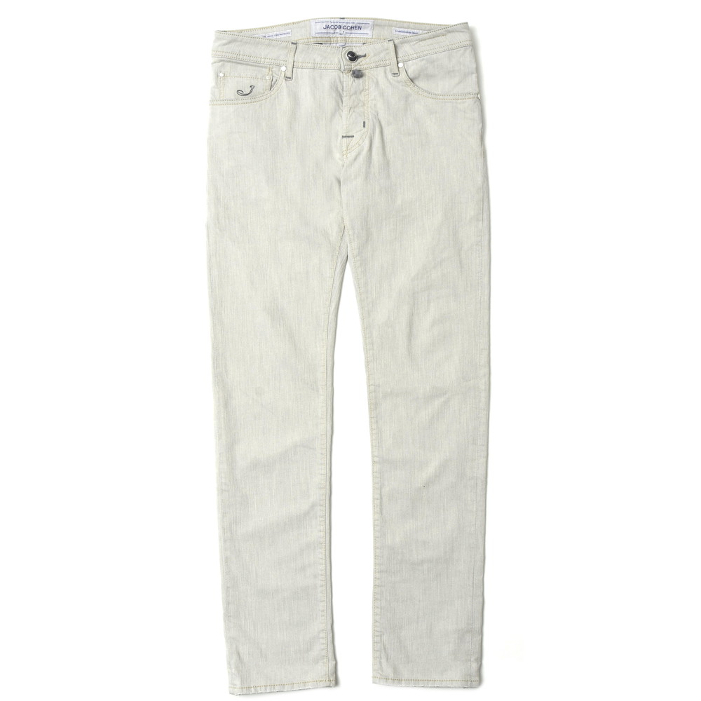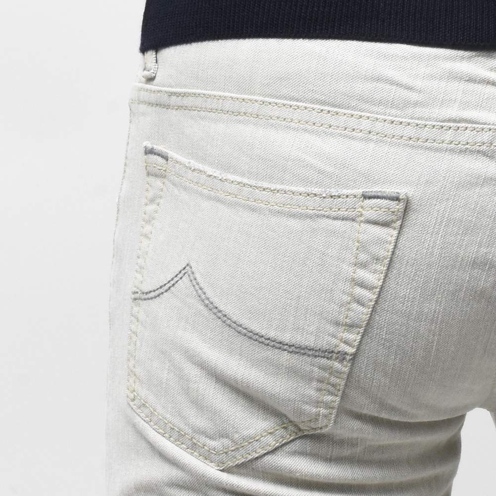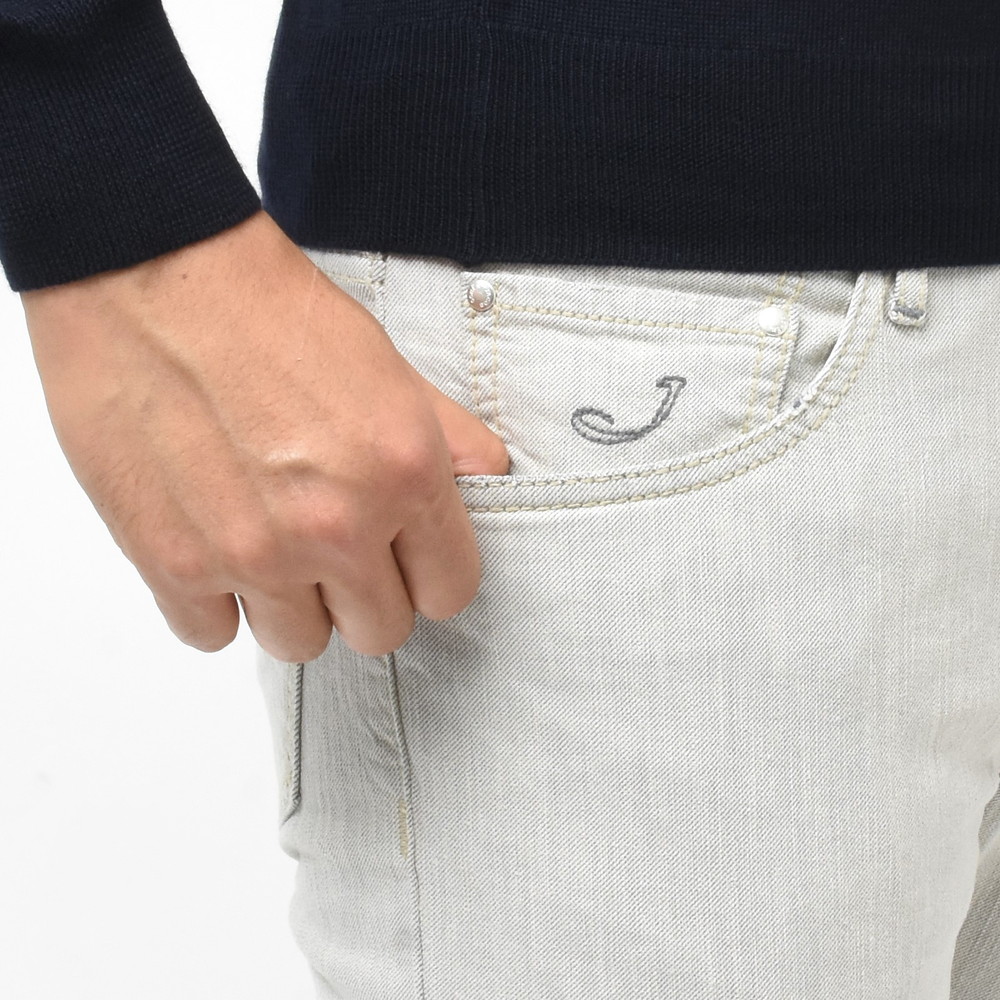 今シーズン入荷したJACOB COHEN(ヤコブコーエン)のグレー系デニムの中でも、最もライトなトーンに仕上げられたこちらのモデルは、ホワイトデニムと同等のクリーンさとほんのりモードな雰囲気を併せ持った洗練されたイメージに仕上がっています。