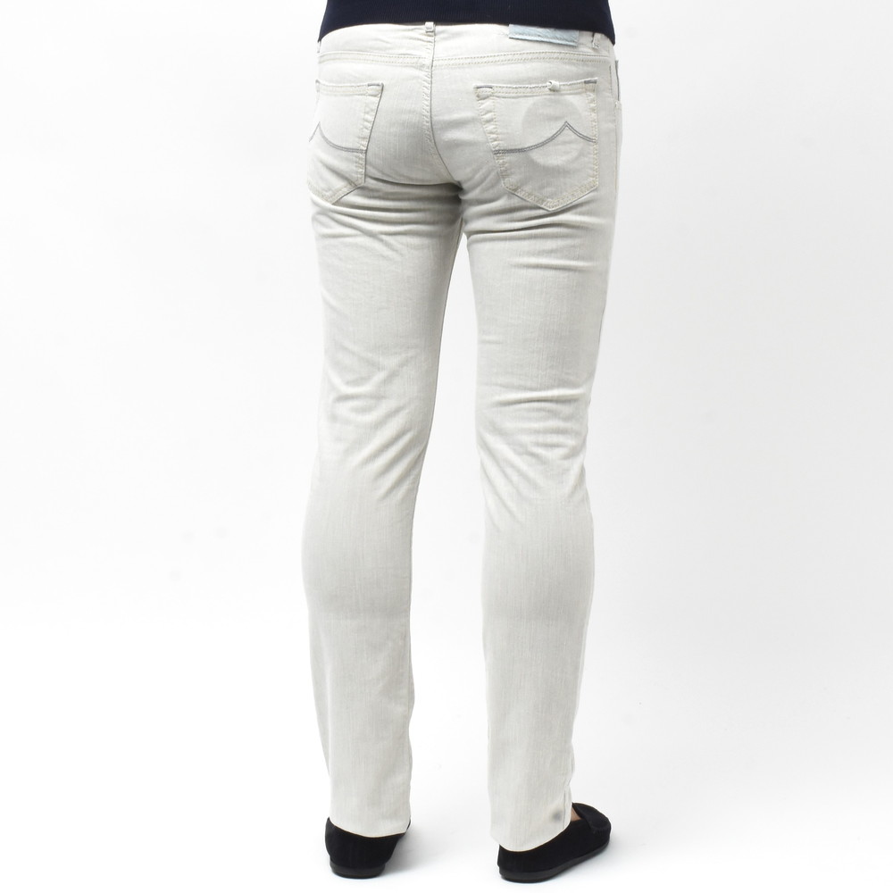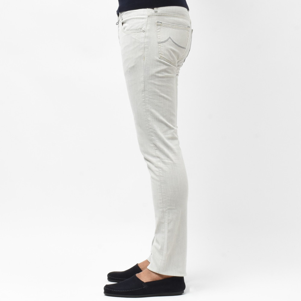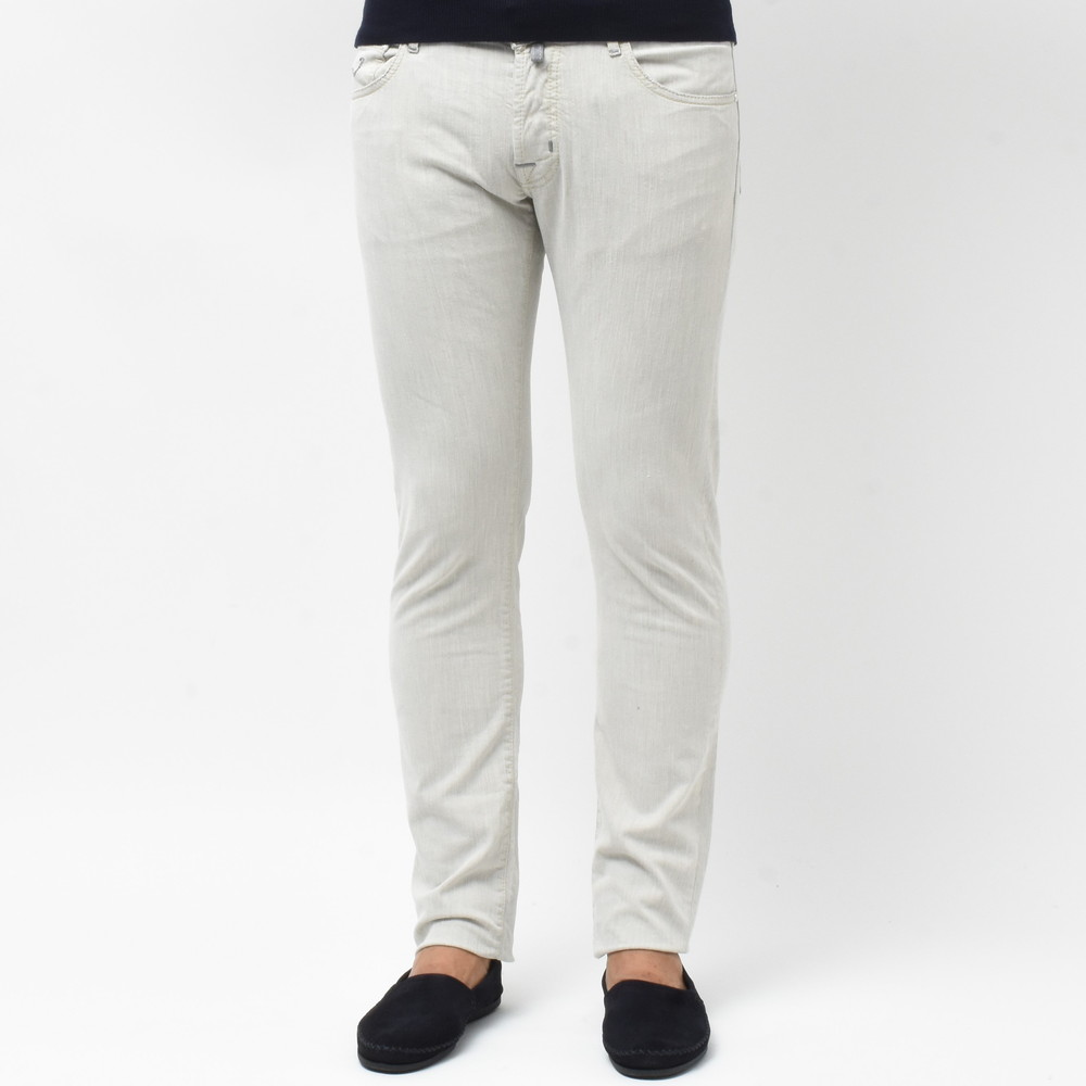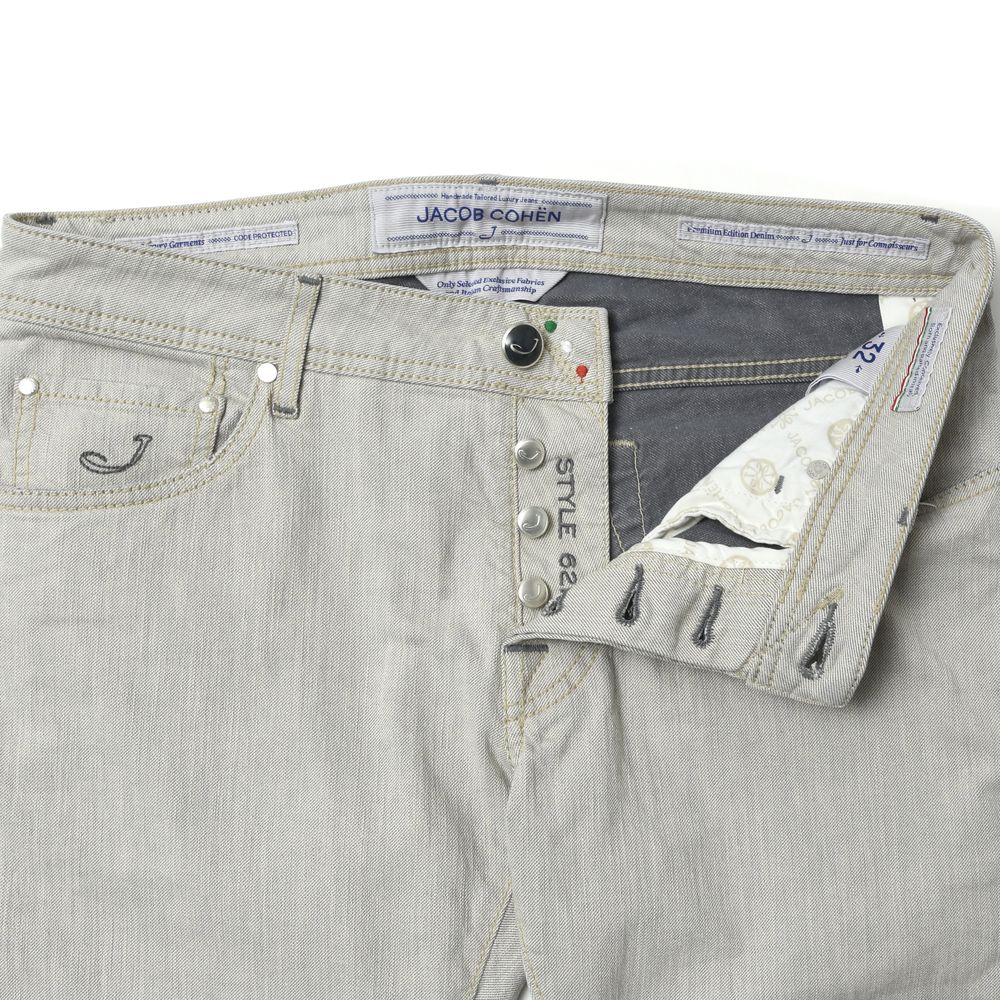 今シーズン入荷したJACOB COHEN(ヤコブコーエン)のグレー系デニムの中でも、最もライトなトーンに仕上げられたこちらのモデルは、ホワイトデニムと同等のクリーンさとほんのりモードな雰囲気を併せ持った洗練されたイメージに仕上がっています。