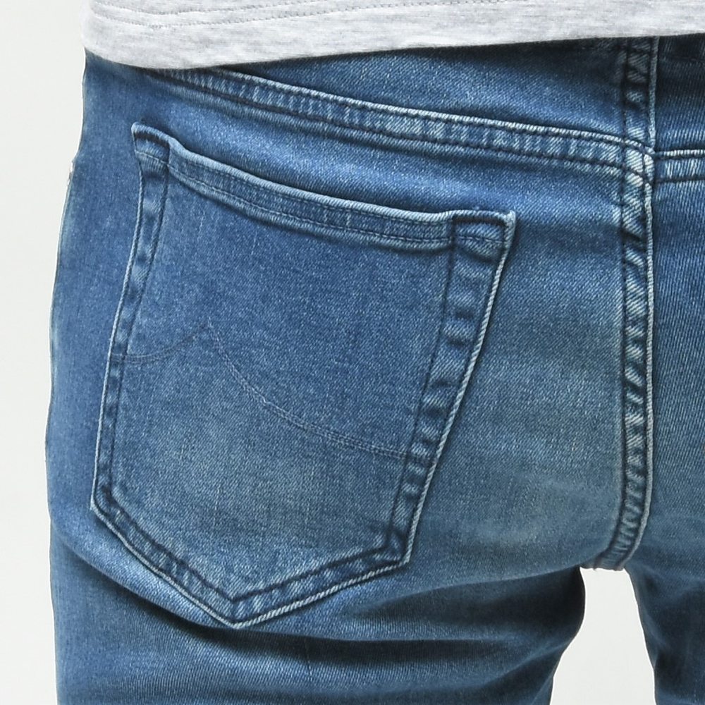 パッと見は非常にリアリティーのあるヴィンテージ調デニムという感じですが、裏地もインディゴカラーになっているので見た目以上にこだわりが発揮された逸品という感じがしますね。こういった所にJACOB COHENらしさというか、ブランドのプライドのようなものを感じます。